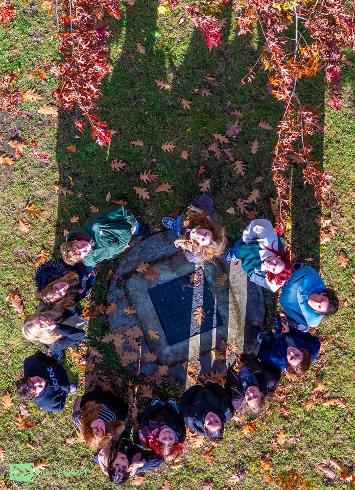 Na een inleidende sessie in het klaslokaal trok de groep naar buiten, waar Jens – met toestemming van de luchtmachtbasis van Kleine-Brogel – zijn drones de lucht in stuurde. De leerlingen konden zo van dichtbij ervaren wat er allemaal komt kijken bij het maken van luchtbeelden: van veiligheid en wetgeving tot kadrering en beweging.