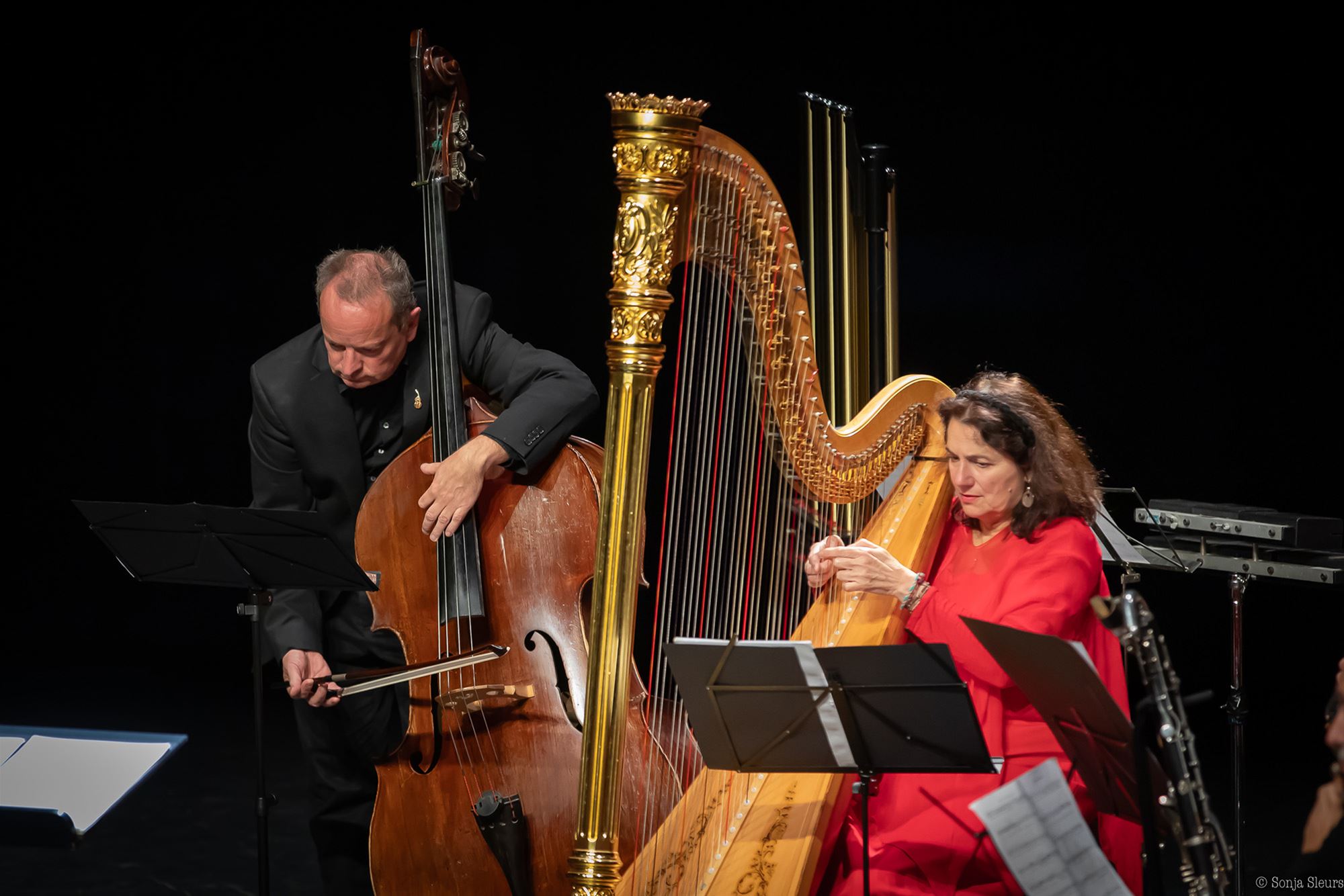 Tien muzikanten van Oxalys bespeelden negen verschillende instrumenten – fluit, klarinet, hoorn, harp, percussie, twee violen, altviool, cello en contrabas – en brachten samen een onvergetelijke klankreis door tijd en ruimte.