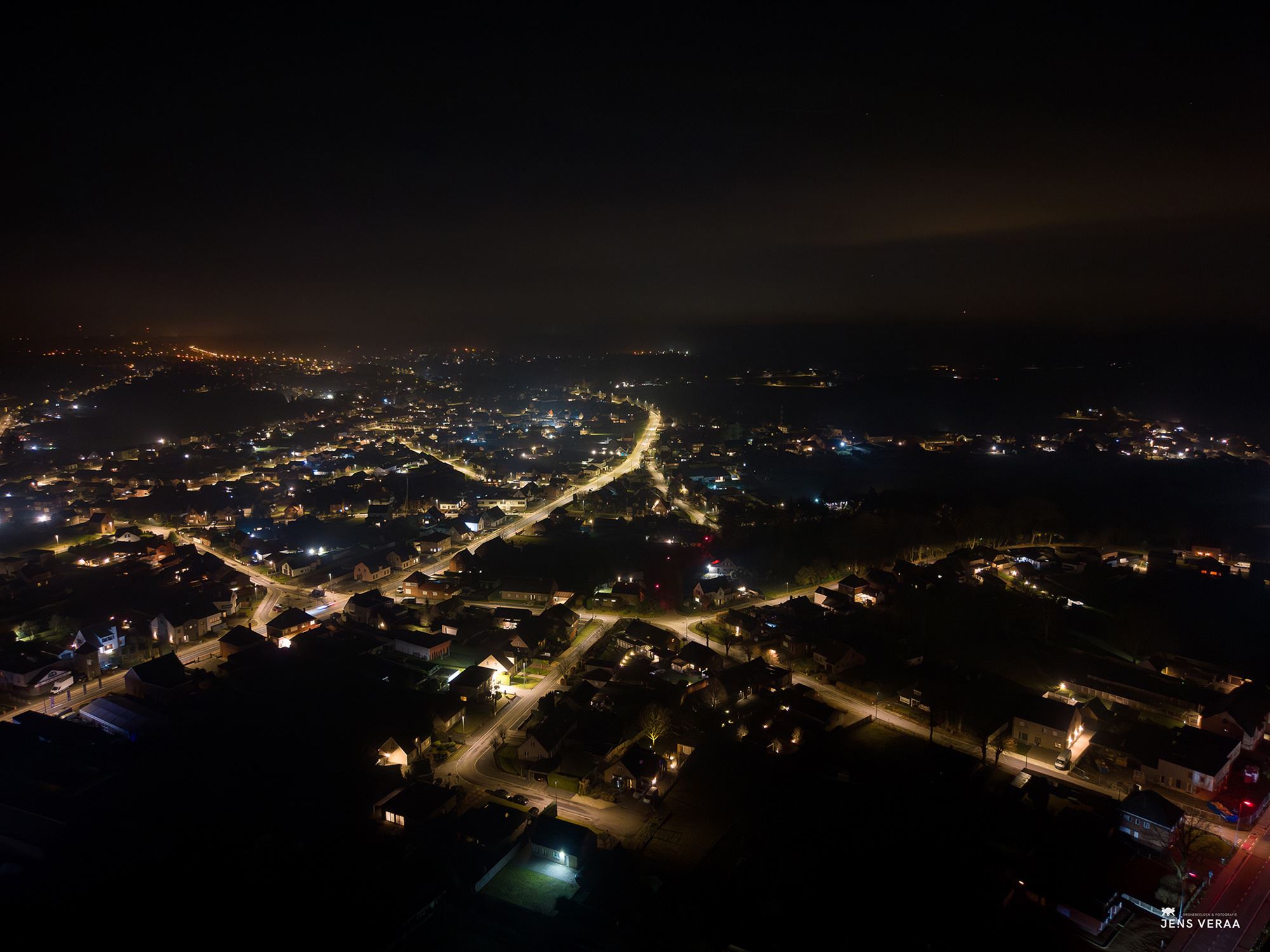 Jens Veraa maakte. Het ziekenhuis en het centrum van Overpelt baadt in het licht, maar de straten ervoor zijn donker. Klokslag 20u ging het licht terug aan...