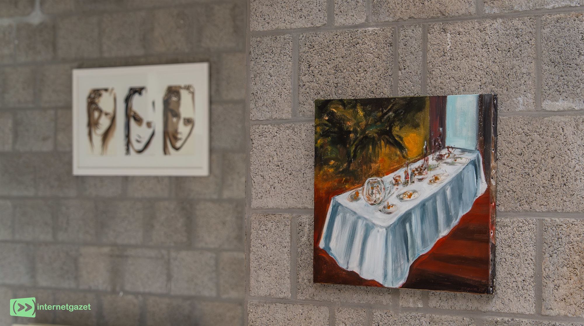 Een opvallend terugkerend thema is de tafel. “Vandaag komen mensen nog maar weinig samen. Terwijl dat zo belangrijk is: samen eten, praten, delen.” In haar werken rond de gedekte tafel vervagen figuren soms, duiken lichte accenten op in donkere composities. “Het gaat over verbondenheid, maar ook over afstand.”