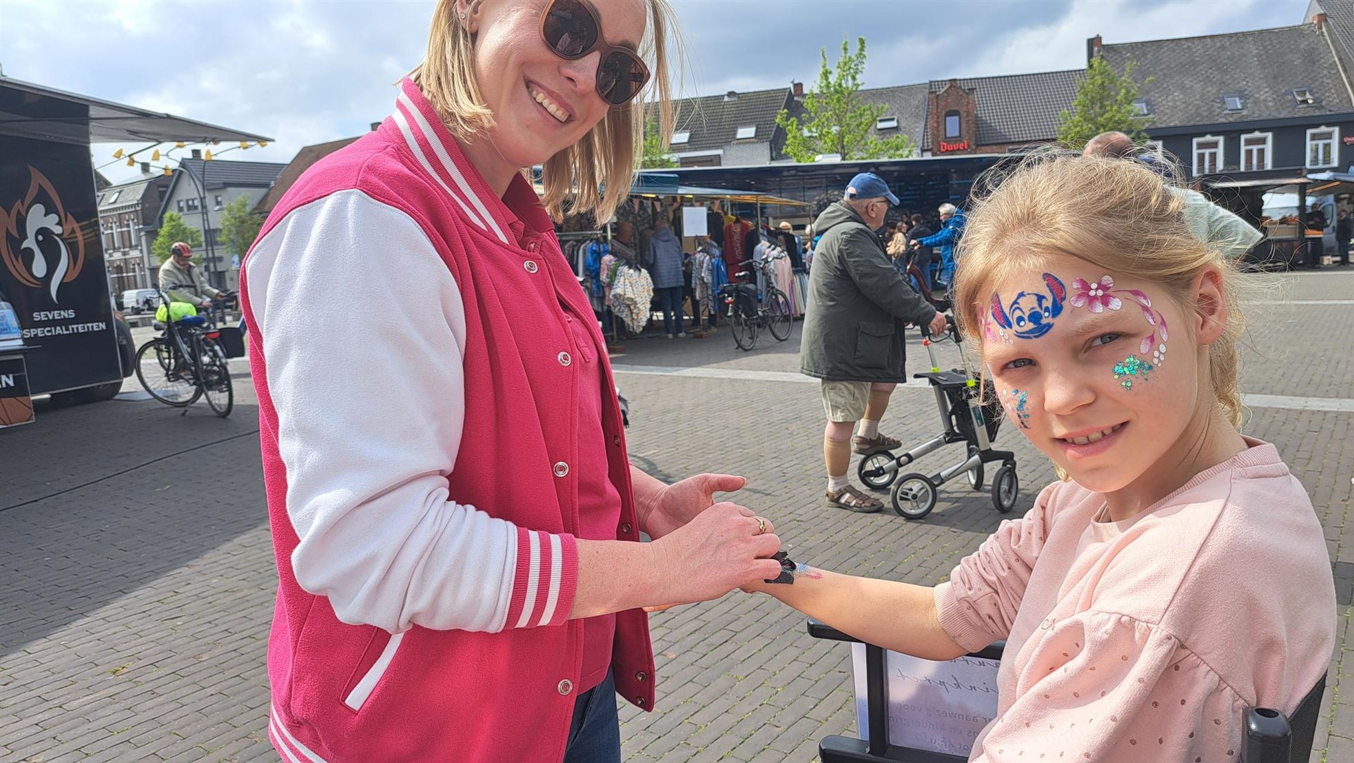 Ook morgen is ze weer aanwezig op de wekelijkse zaterdagmarkt, waar kinderen zich gratis kunnen laten schminken en even helemaal kunnen opgaan in hun fantasie.