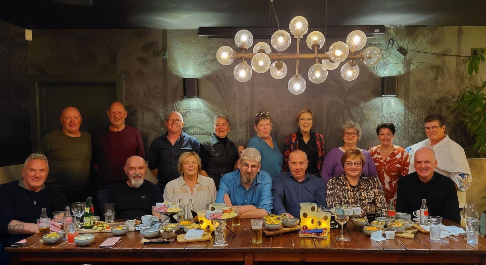 oud-leerlingen van de lagere school van Grote-Heide, geboortejaar 1963, na vele jaren nog eens samen. Het werd een bijzonder gezellige avond vol herinneringen, oude verhalen en anekdotes, afgewisseld met een hapje en een drankje. De sfeer zat meteen goed en de plannen voor een volgende reünie werden alvast gemaakt.