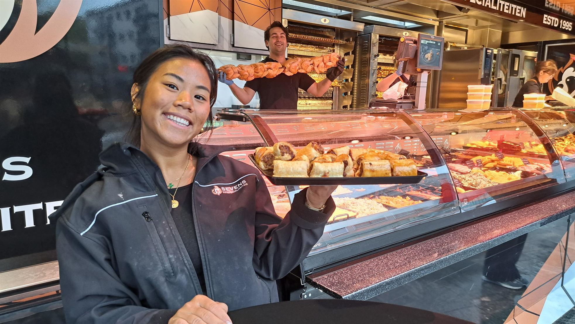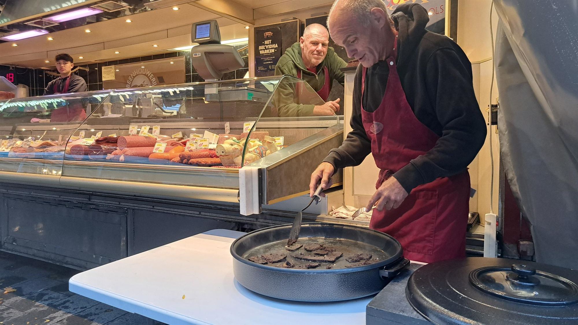 Dappere marktbezoekers die op deze zaterdagmorgen de wind en regen trotseerden, werden beloond met heerlijke proeverijen recht van de markt.