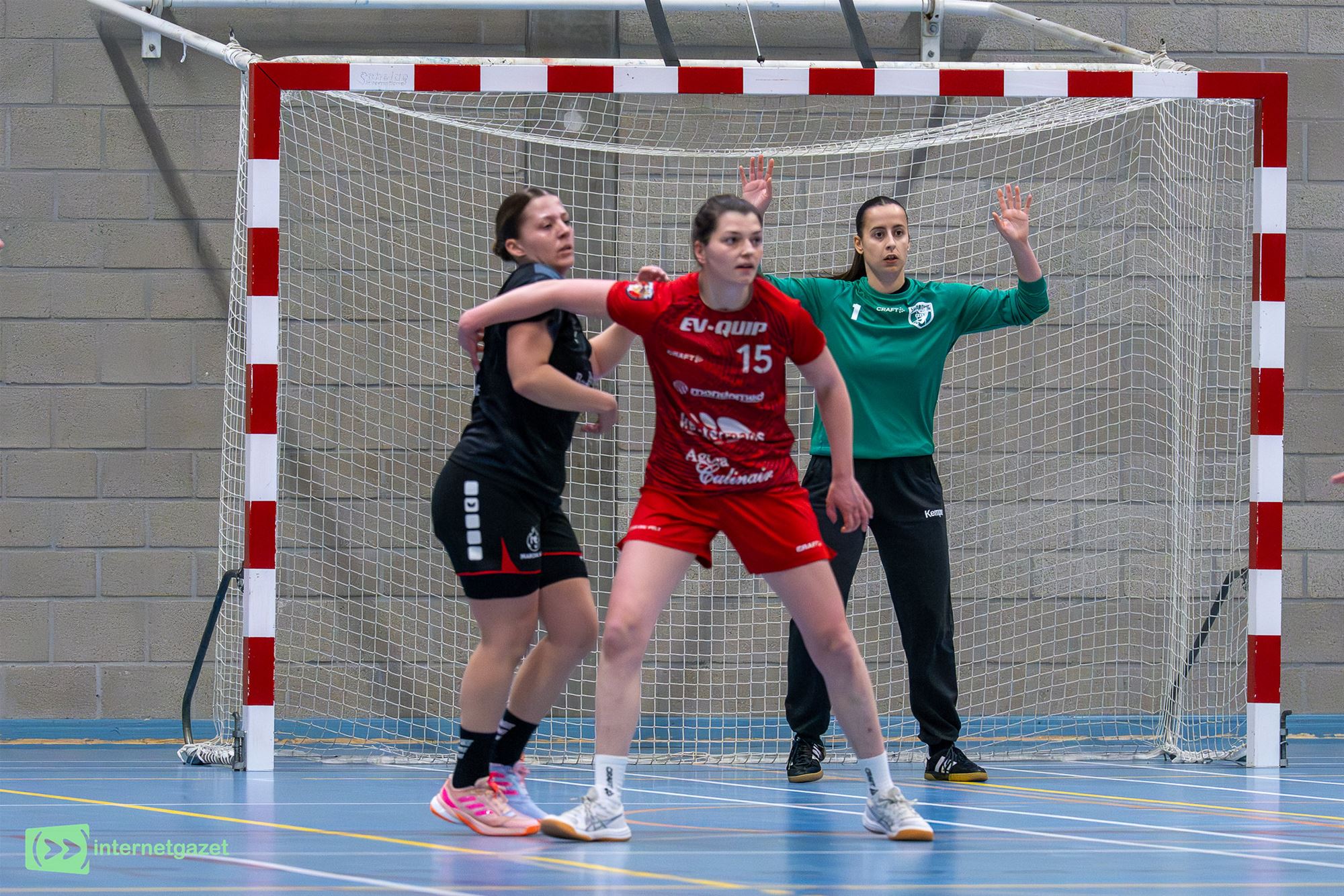 Na dertien speelminuten volgde een kantelmoment in de partij: kapitein Charlotte moest het veld verlaten na een rode kaart. Even leek dit de sfeer in de zaal te veranderen, maar Pelt liet zich niet van de wijs brengen. Integendeel, na twintig minuten stond er een duidelijke 12-5 voorsprong op het scorebord.