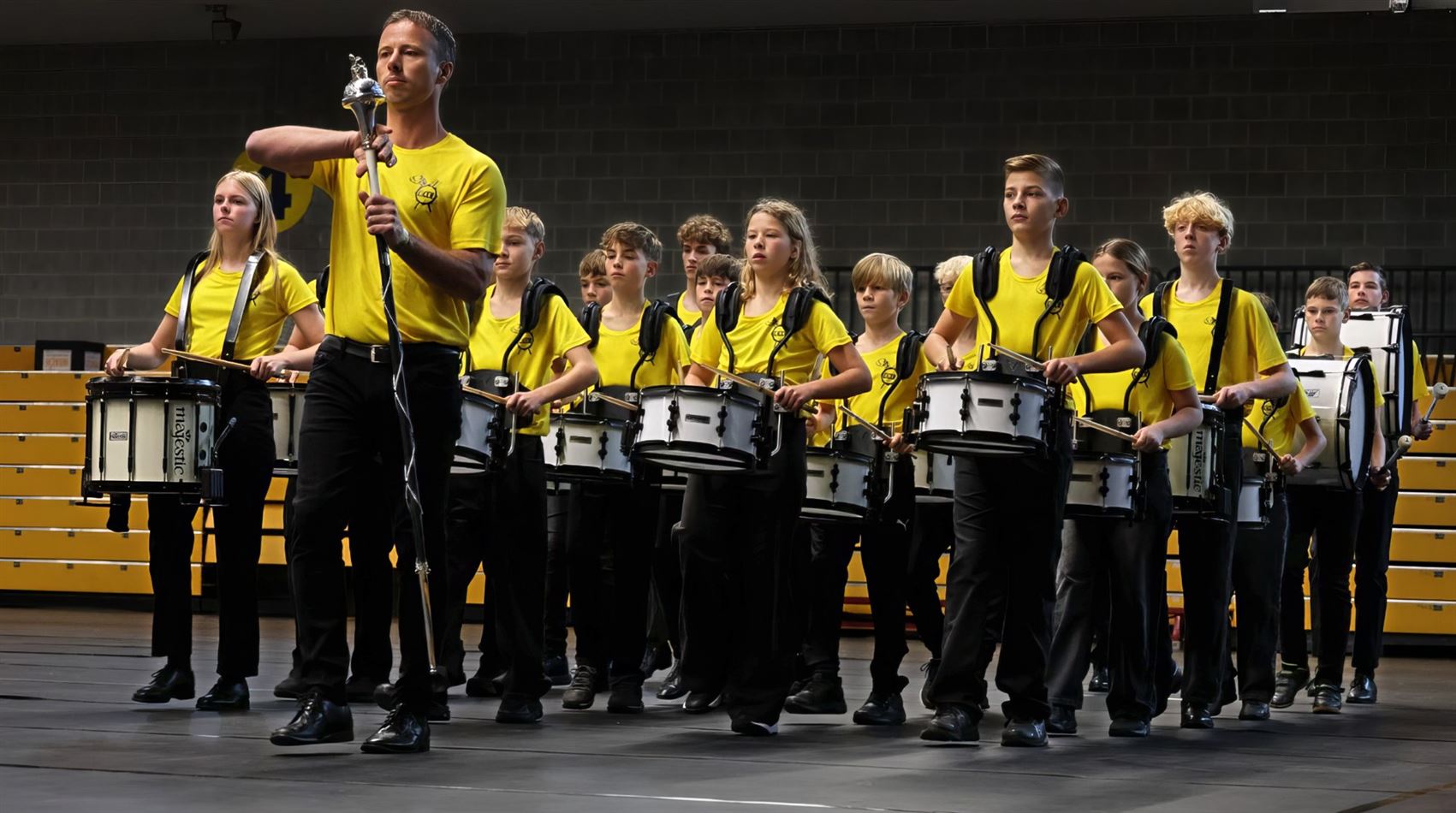 jaarlijkse mars- en showwedstrijden in Wevelgem. De drummers van de Koninklijke Schutterij Sint-Sebastiaan uit Sint-Huibrechts-Lille namen er deel met twee korpsen.