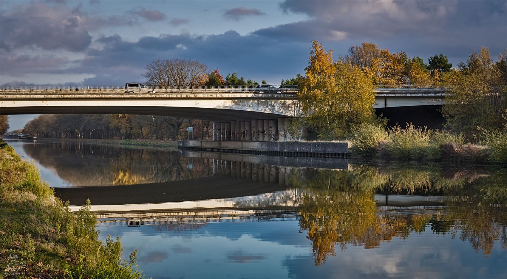 Wat boven gebeurt, herhaalt zich beneden. Alsof het water een perfect geheugen heeft en denkt: “Dat kan ik ook!” Spiegelgedrag, letterlijk en figuurlijk. Een vleugje magie boven het kanaal Bocholt–Herentals, bij het kapelletje van Onze-Lieve-Vrouw van Genade aan de Jachtweg in Neerpelt. Daar waar de wereld zich even omdraait en alles — heel even — mooier lijkt ondersteboven. Gelukkig hield de fotograaf z’n camera niet ondersteboven… al had dat hier perfect gekund.
