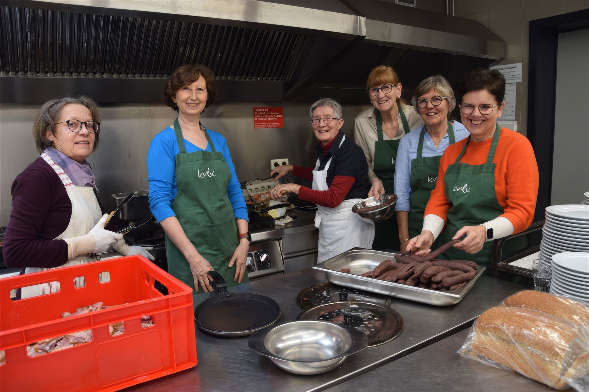 Wie honger had, kon intussen aanschuiven voor een stevig bord spek met ei of een bloedworst. De gezellige drukte hield nog lang aan in zaal De Vranken.