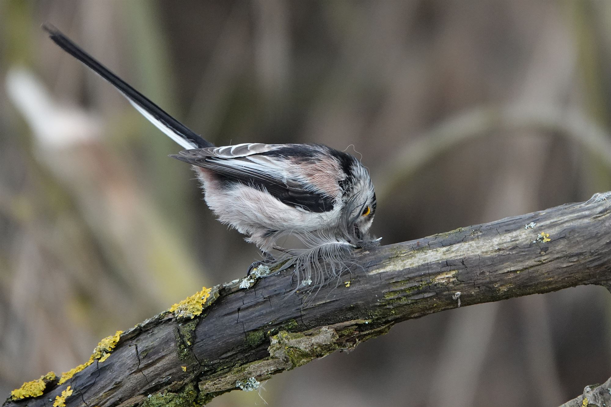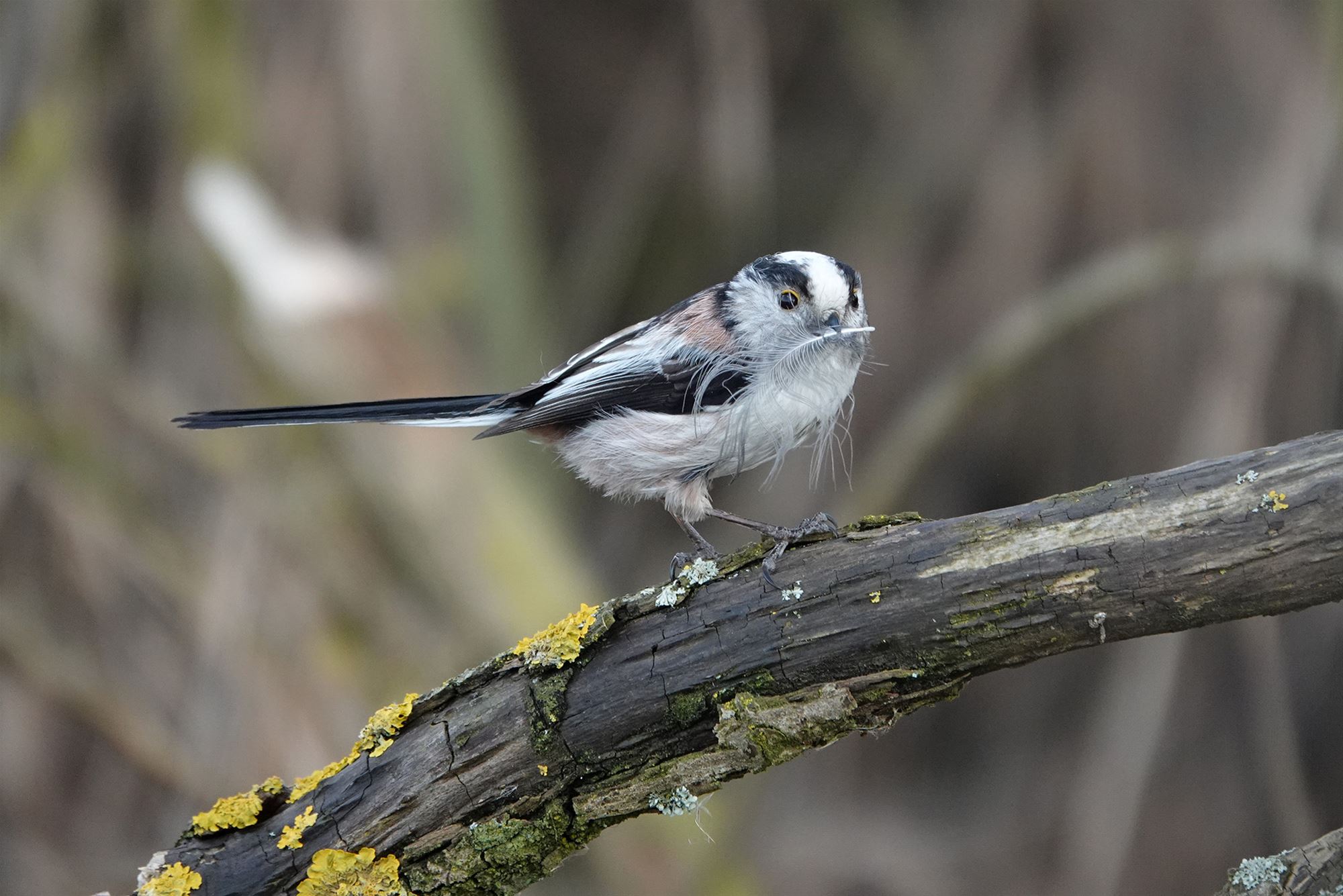 Dat moment duurde echter niet lang: op enkele seconden tijd kon Marcella deze foto maken. Staartmezen zijn immers bijzonder beweeglijk en zelden lang op dezelfde plek te zien.