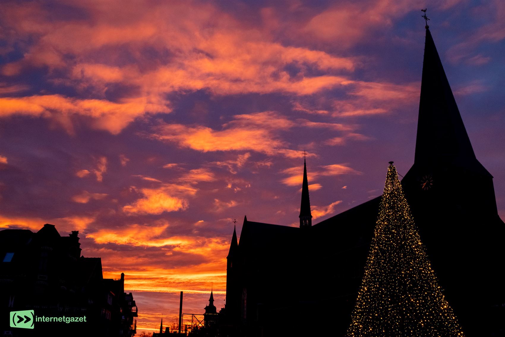 Weer een prachtige hemel deze ochtend, helemaal af als je er een kerk en een sfeervol verlichte kerstboom bij plaatst. Ook vandaag blijft het opvallend zacht voor de tijd van het jaar en bovendien zou het droog blijven.