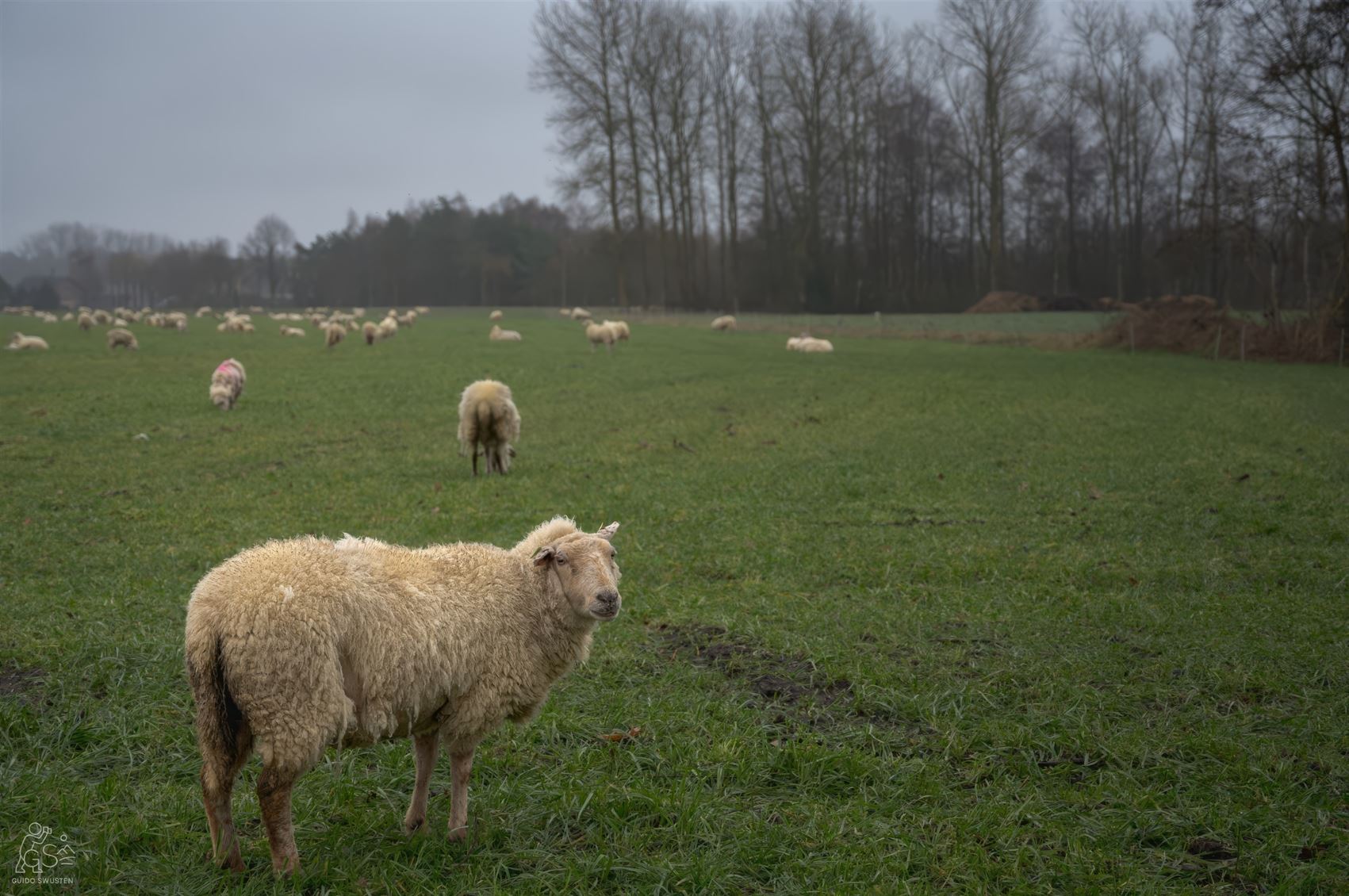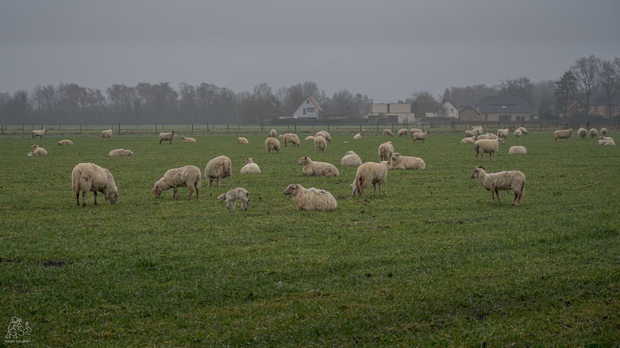 dikke winterjas. Als deze schapen inspraak hadden, stond er vermoedelijk een gezellig afdakje en misschien zelfs roomservice klaar, met een extra portie vers hooi. Maar ach, zolang het gras groen genoeg blijft om smakelijk te zijn, lijken ze zich nergens zorgen over te maken. Deze verrassende kudde werd gespot in een weiland tussen de Hayenhoek en de Zonhoekstraat (Grote-Heide) - toch geen alledaags zicht op die plek. Nu alleen hopen dat wolf Noëlla haar gps even uitgeschakeld laat…