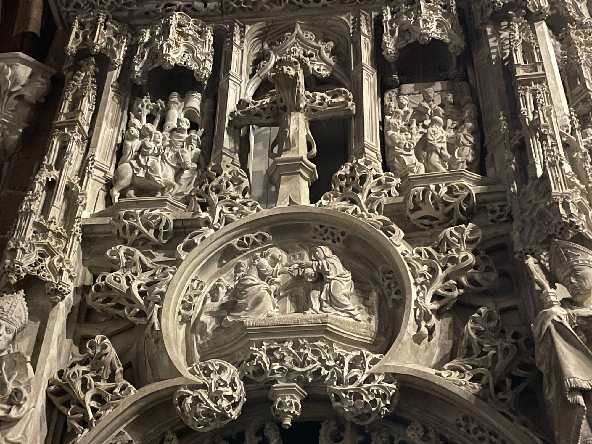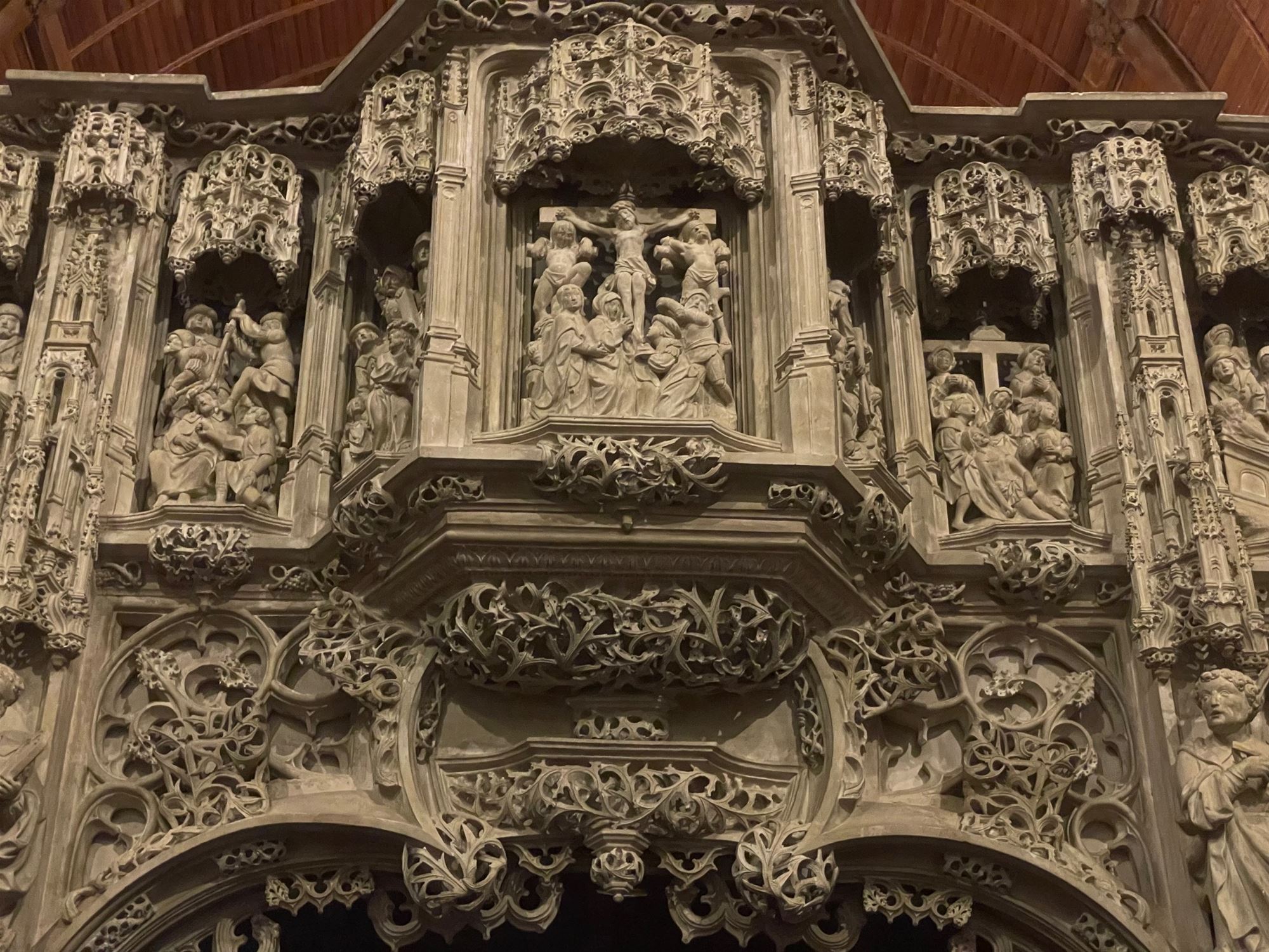Een koordoksaal of jubee is een stenen wand die het schip, waar de kerkbezoekers zitten, van het koor scheidt. Daar mochten alleen de priester of andere gewijde mensen komen. Het rijkelijk versierde doksaal in de Sint-Martinuskerk dateert uit 1525 en is vervaardigd uit zachte kalksteen van Avesnes. Het is wel elf meter lang en steunt op vier Doornikse zuilen. In de eenentwintig nissen kan je taferelen uit het leven van Christus zien. Samen vormen ze een soort beeldverhaal, een ‘bijbel voor de gewone man’. Toen het doksaal vervaardigd werd, konden niet veel mensen lezen. Dankzij zo’n stenen beeldverhaal leerden die ongeletterde kerkbezoekers de Bijbelverhalen kennen. Het is nog steeds een statussymbool voor de kerk. In heel België zijn er maar vijf gotische doksalen overgebleven. Het was een statussymbool voor de kerk en essentieel in de liturgie: van lezingen zingen tot bisschopswijdingen.