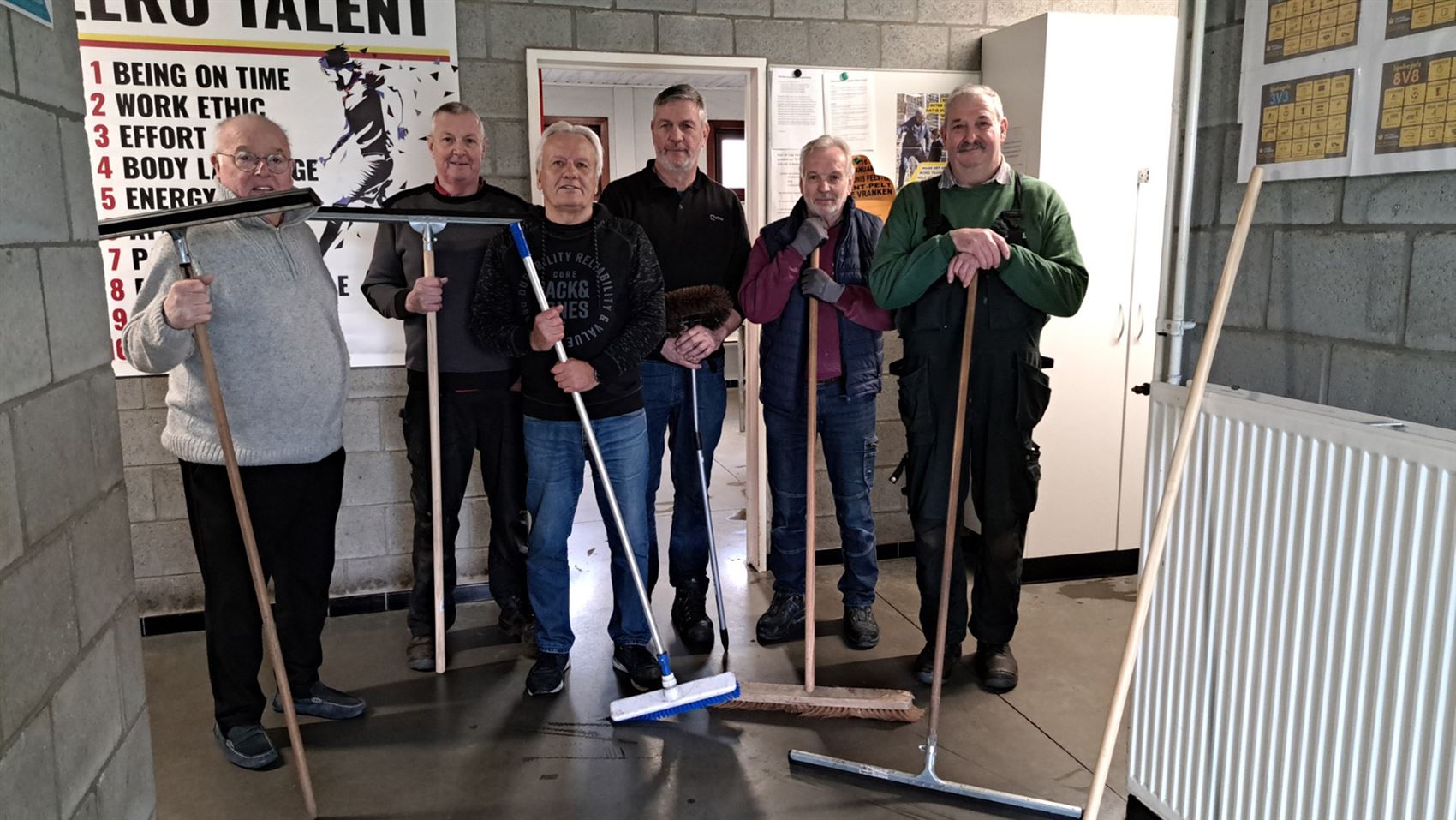 De vrijwilligers gaven daarbij ook aan zeer tevreden te zijn over hoe zowel de jeugd als de seniors de kleedkamers onderhouden en achterlaten, na elke training en op elke wedstrijddag. Die respectvolle houding maakt het werk lichter en daarvoor waren Jan, Eddy, Francois, Lode, Johan en Rudi erg dankbaar.