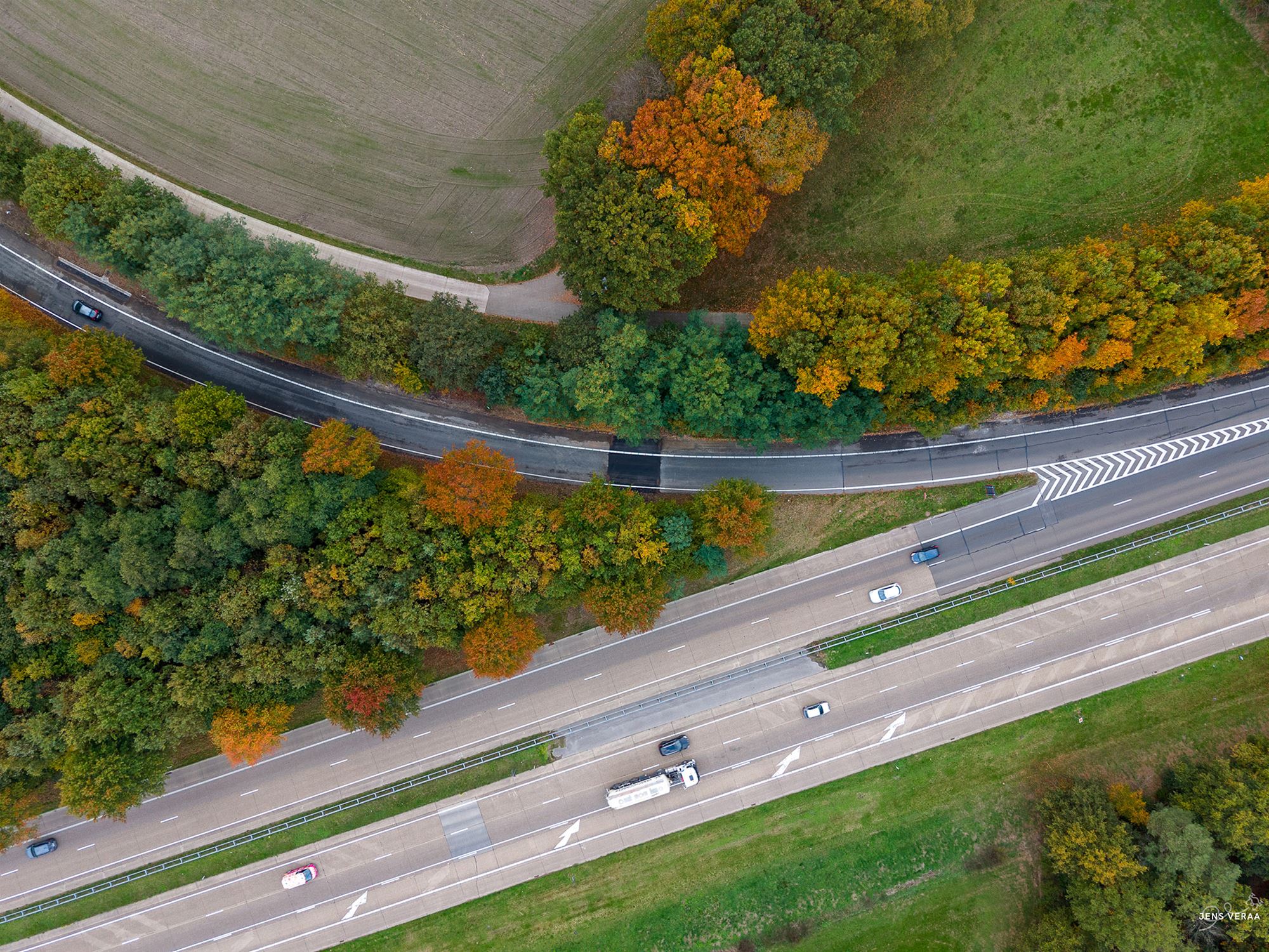 Jens Veraa vaststellen. Op zijn recente beelden is duidelijk te zien dat het wegdek opnieuw in perfecte staat verkeert en het verkeer er weer vlot kan doorrijden.