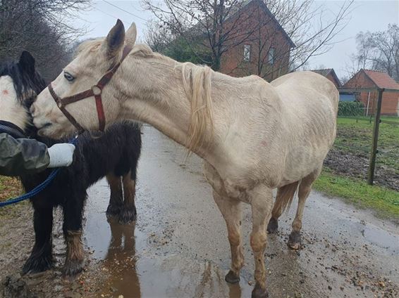 twee hongerige paarden in Koersel. Nog vorige week volgden