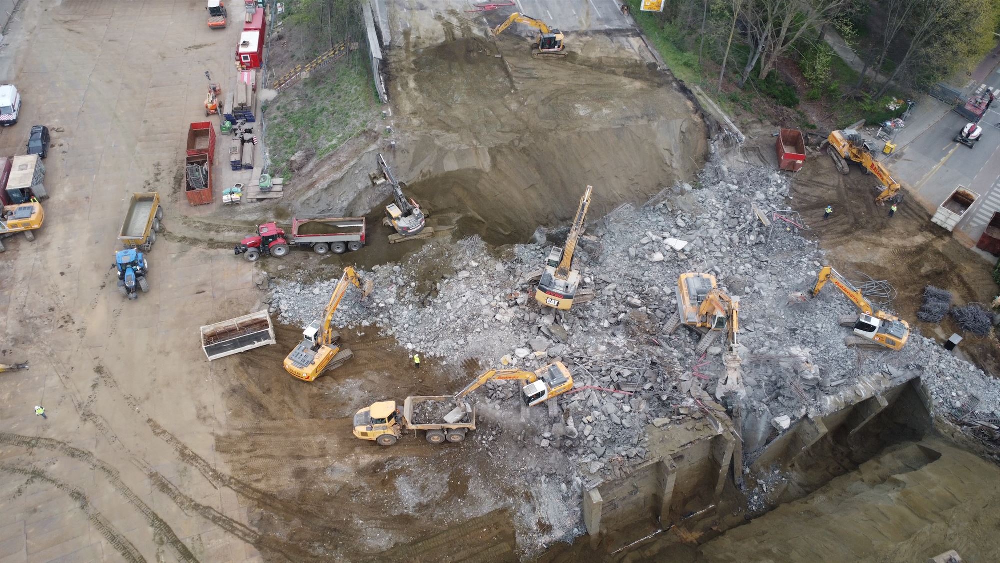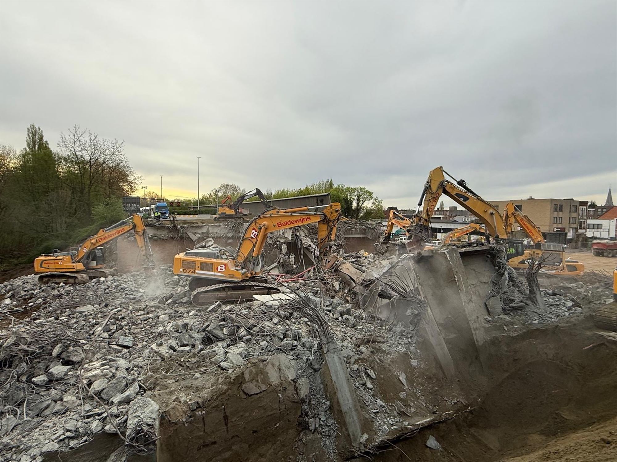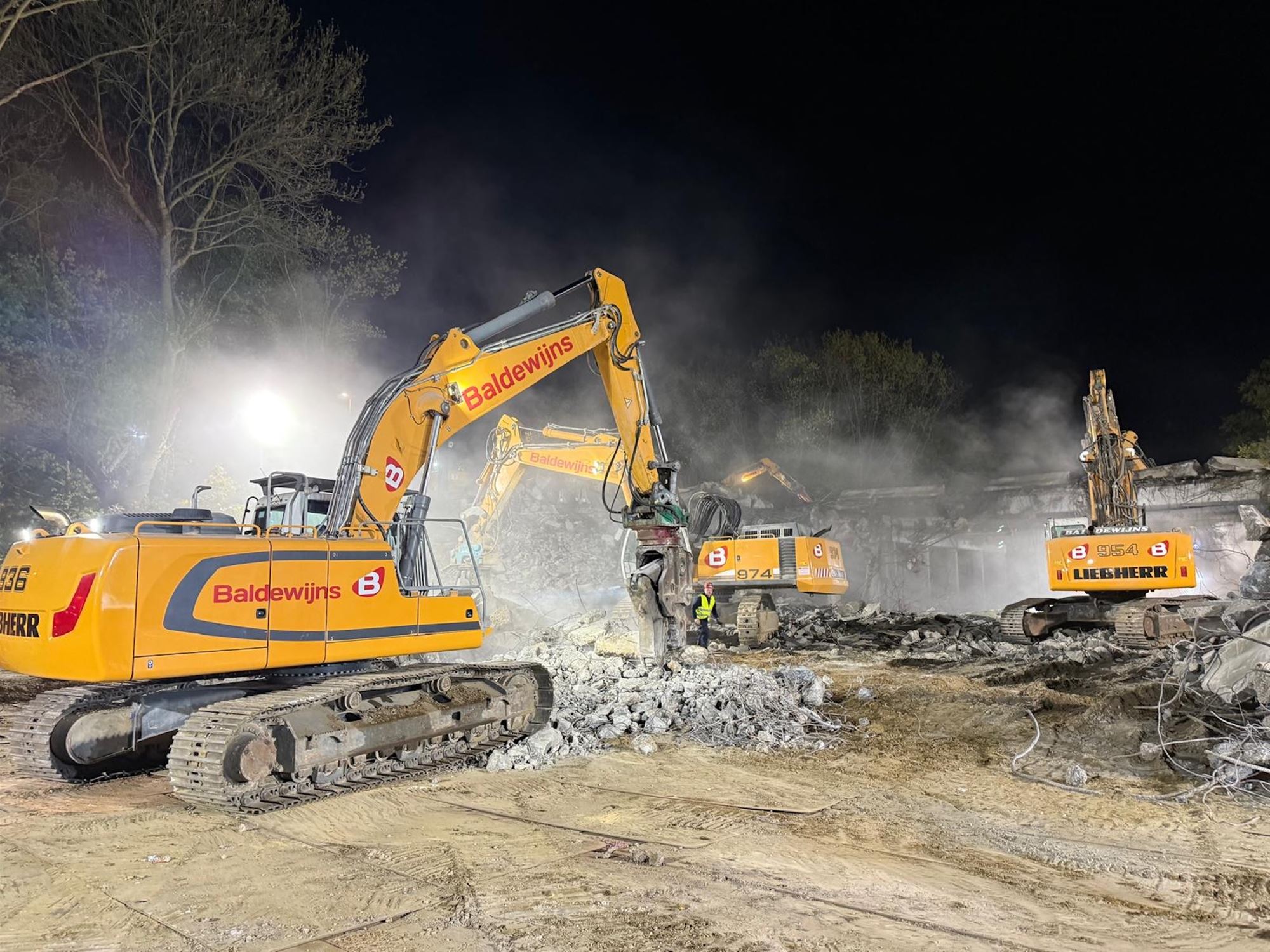 Beringse bedrijf Baldewijns. Het afbraakbedrijf heeft zich de laatste jaren gespecialiseerd in de afbraak van bruggen, denk maar aan de afbraak van de bruggen over het Albertkanaal. Het bedrijf kwam afgelopen dagen uitvoerig in het nieuws door de afbraak van de twee bruggen onder de E313 in Antwerpen afgelopen weekend. Het was alle hens aan dek om de klus op tijd te klaren. Op dit moment worden het puin 's nachts nog afgevoerd richting de site in Beringen. Daar wordt het puin 100% gerecycleerd en zo kan het beton terug gebruikt worden voor de wegenbouw.