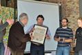 Jordy Vancleef schoot de klep 2x weg en werd winnaar. Tweede werd Brigitta Vermeyen en derde Remy Peremans. Op de foto: de drie prijswinnaars samen met de voorzitter.