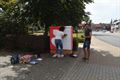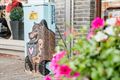 schepen van Cultuur An Moons deze middag één van de elektriciteitskastjes die werden omgetoverd tot kunstwerkjes.