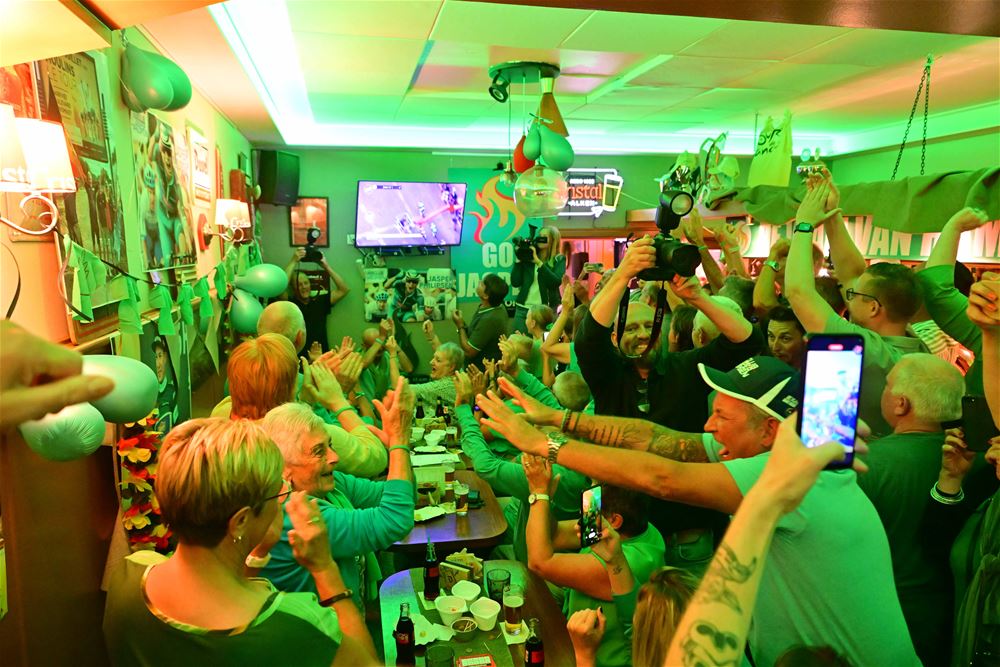 Café 't Dorp in Ham kleurde gisteren helemaal groen voor de grote finale van de Ronde van Frankrijk. De familie kreeg de eretafel in het café en buiten verzamelden nog honderden fans en dorpsgenoten van Jasper Philipsen. Ook een heel grote groep uit Beringen want Jasper is ook bij ons heel populair. Een