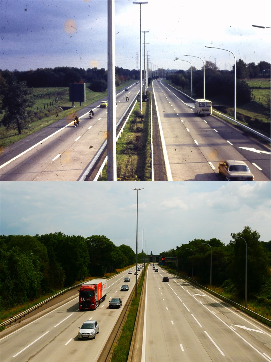 De E313, aangelegd in de jaren '60 en sinds enkele jaren met spitsstroken.