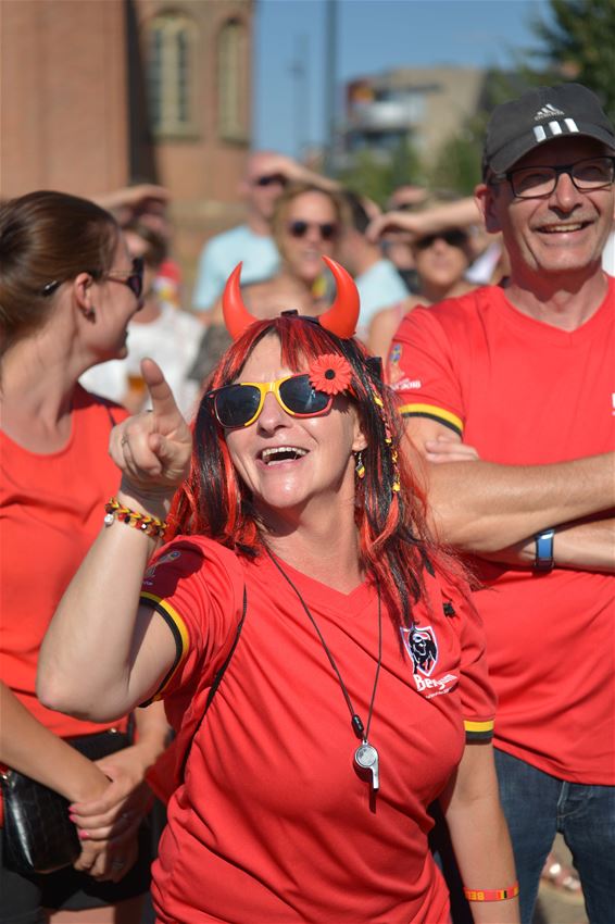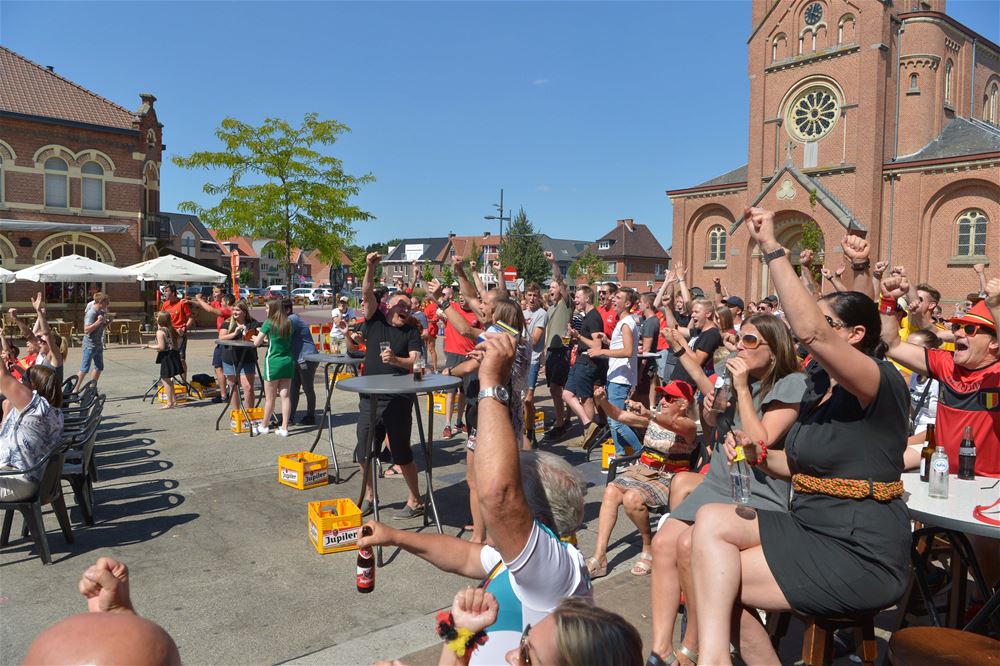 supportersclub DFL11 zette gisteren nog eens alles op alles in Paal centrum om de Rode Duivels naar de bronzen medaille te schreeuwen. En met succes! Het werd weer een dik feestje dankzij de goals van Meunier en Hazard. De supportersclub heeft er drukke weken opzitten met het op- en afbreken van tenten en het opruimen van het plein voor café 't Centrum. Gisteren werd er gekeken in de zon met een groot LED-scherm. Een mooie afsluiter van een mooi WK.