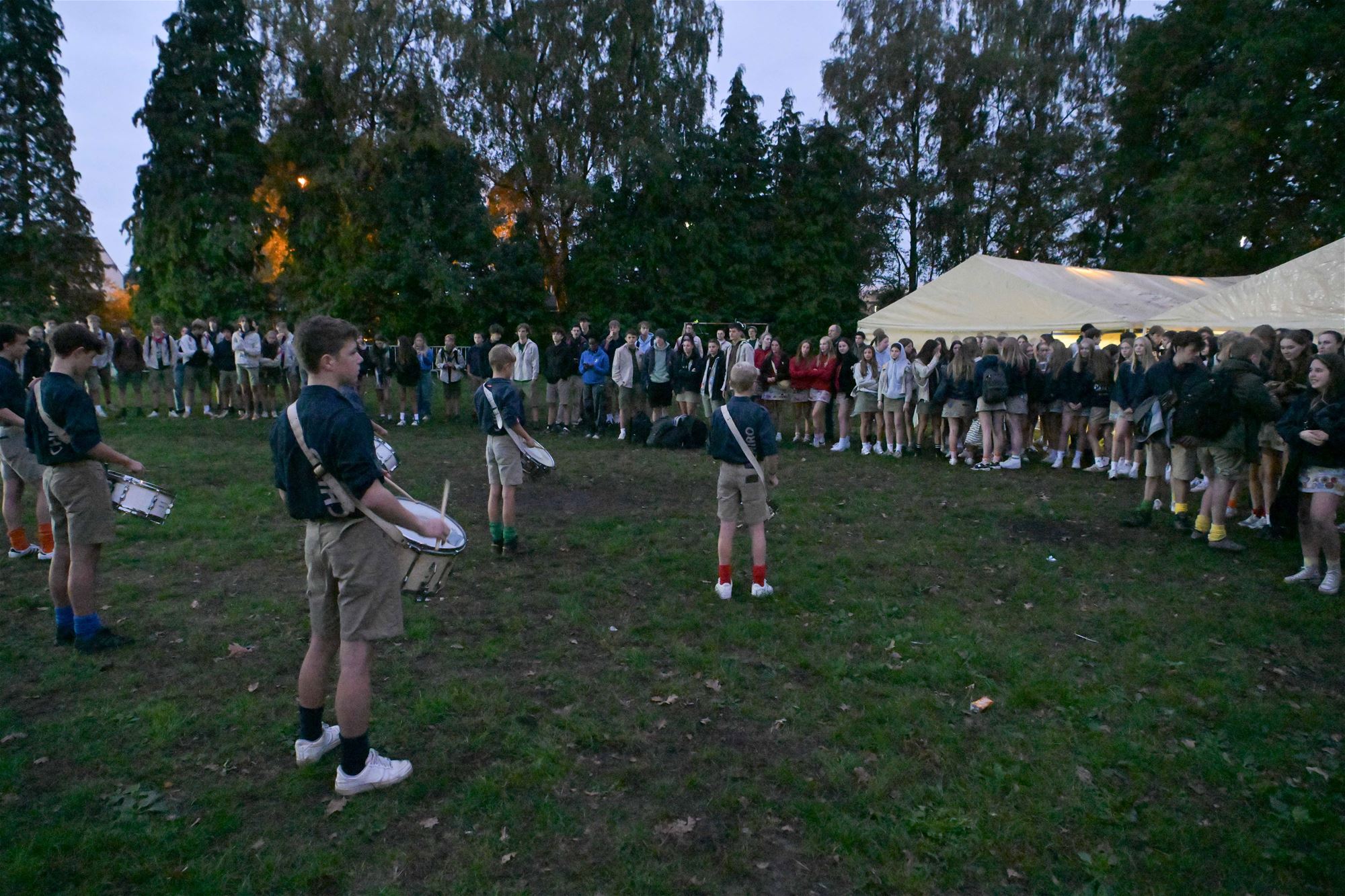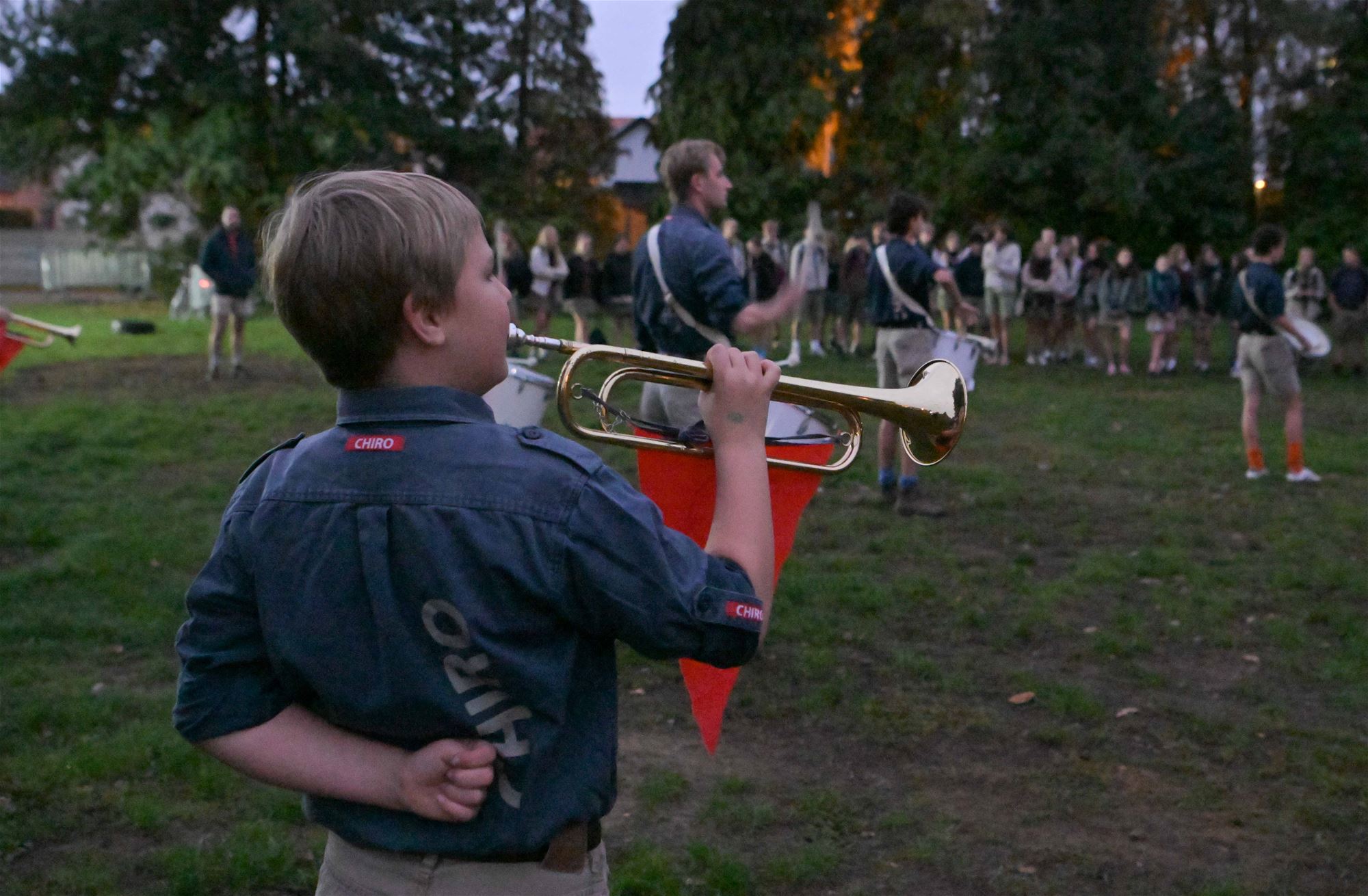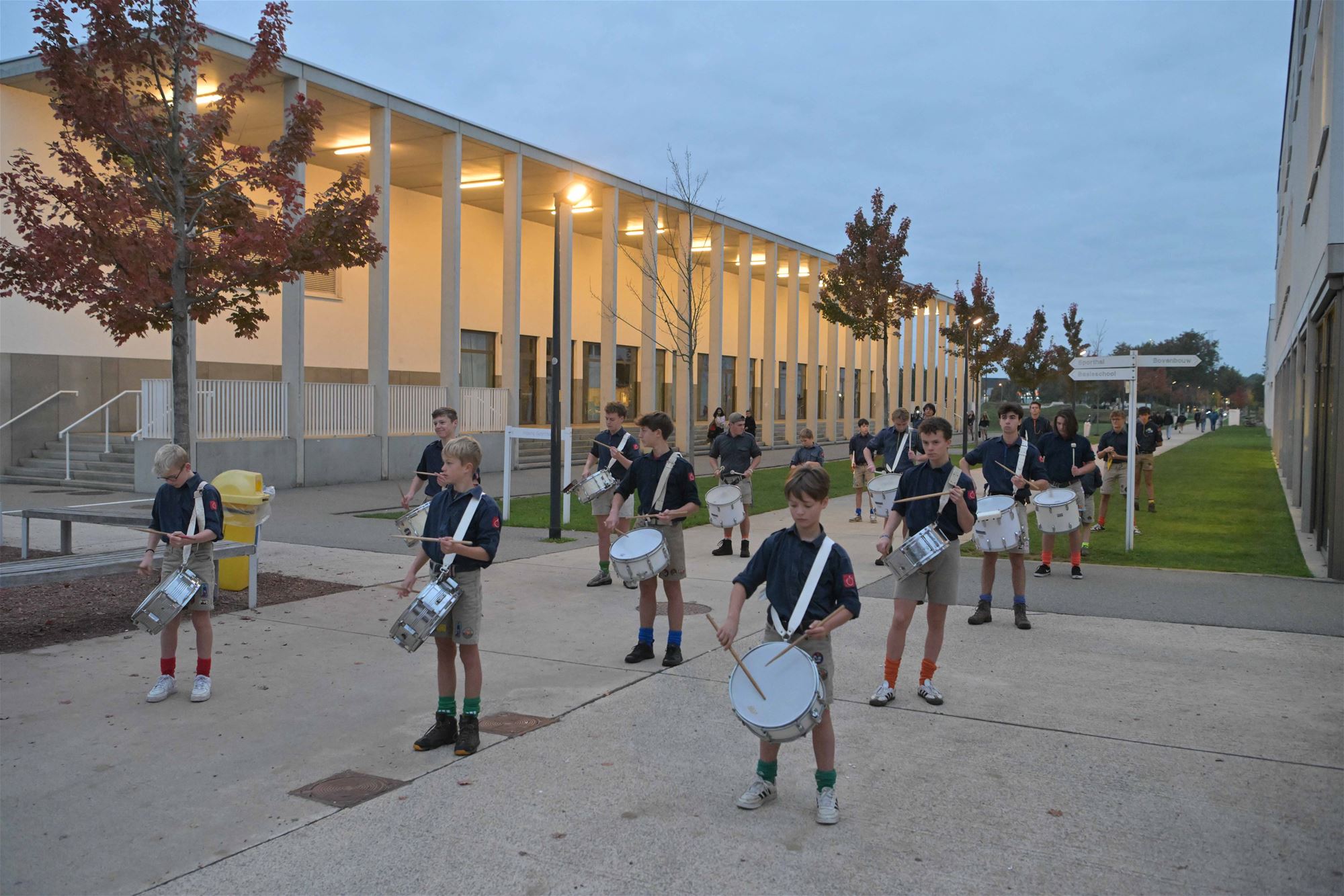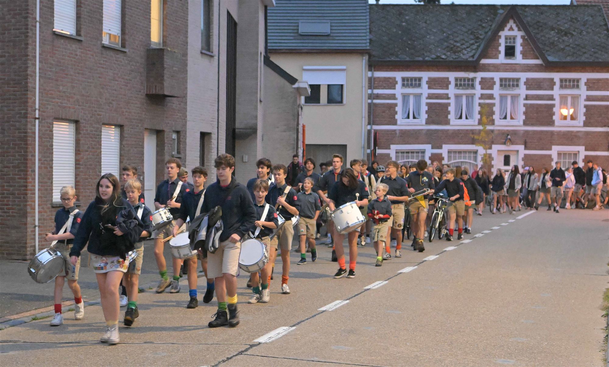 trommelkorps van Chiro Koersel in stoet naar de campus van het Spectrumcollege. Deze middag is er soep in de scholen en namiddag verzamelen de jongeren terug in het centrum. Daar krijgen ze nog een frietje en een embleem. Deze avond is er de Nacht van de Jeugdbeweging in Genk. "In Beringen zijn