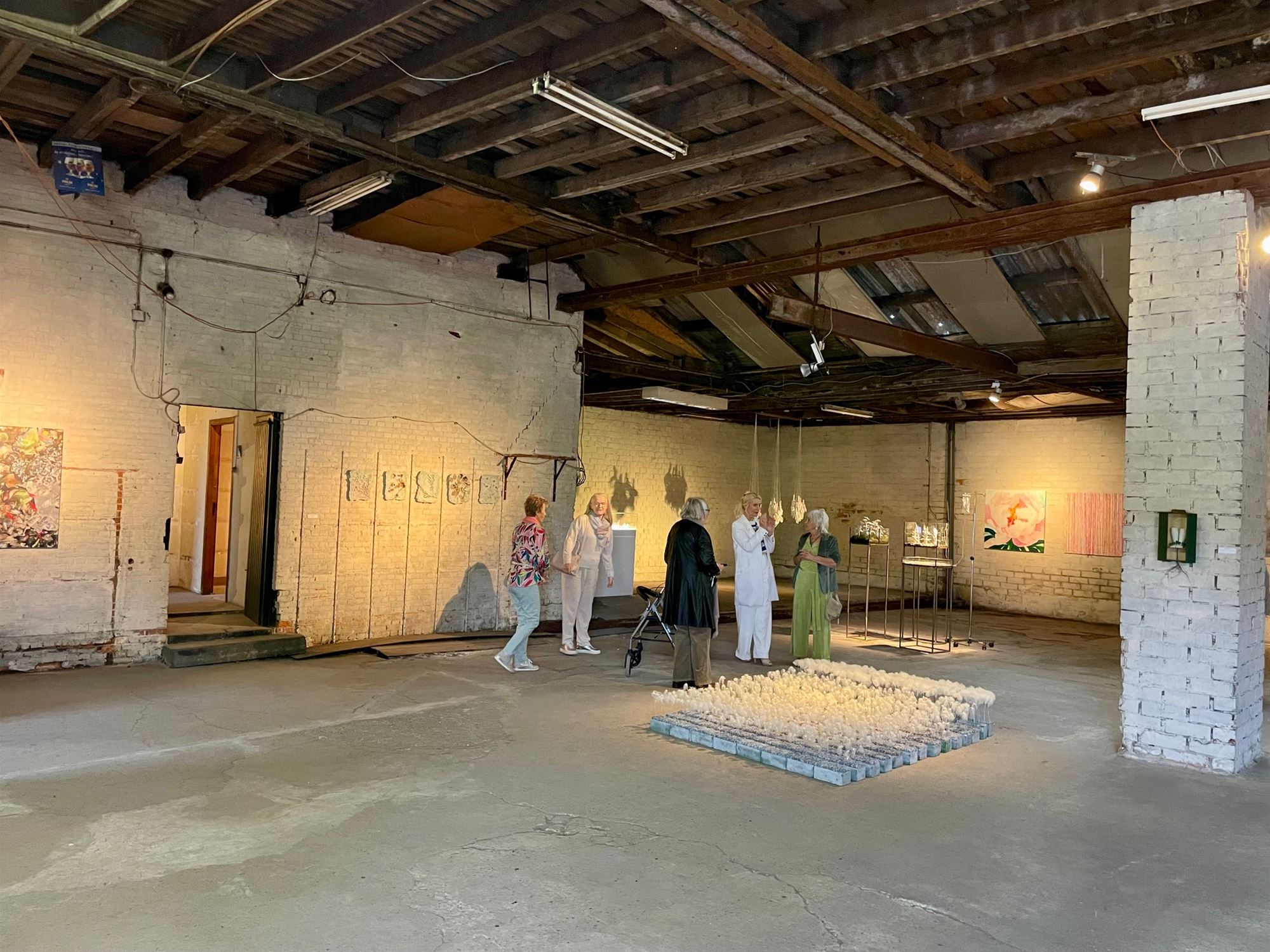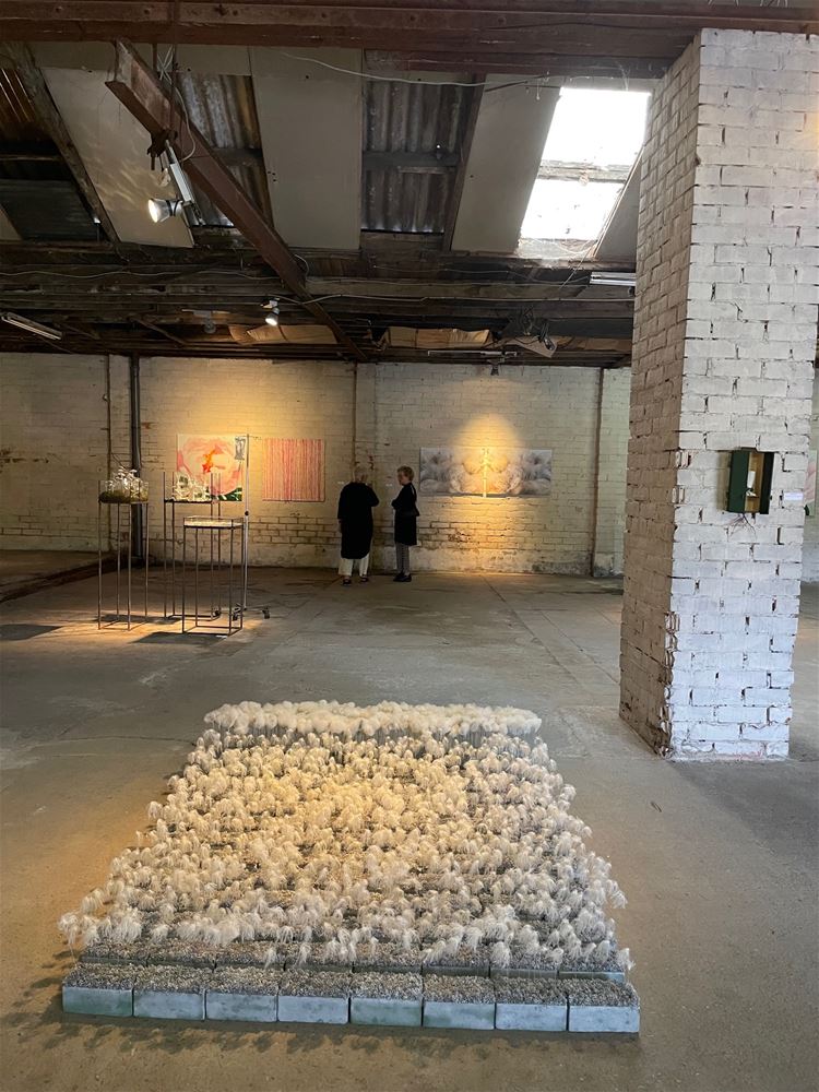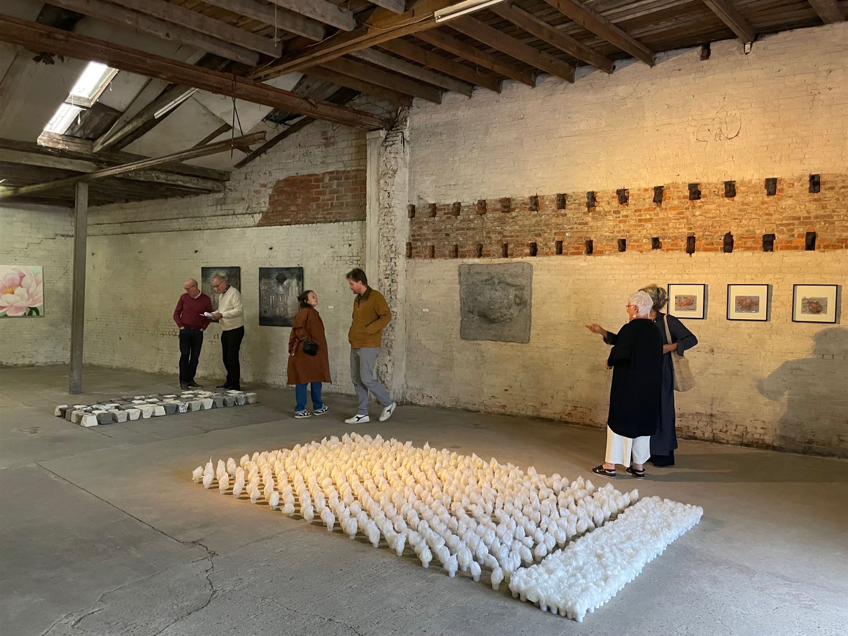 ‘If You Could Touch a Thought’ af. De drie kunstenaars stelden tentoon in de voormalige drakenhal Gijbels in de Schrijnwerkerstraat in Paal, een ondertussen vervallen gebouw dat eerstdaags plaats zal maken voor appartementen. De schoonheid van verlaten of vervallen gebouwen is een vaste waarde bij Marijke, Zjeeke en Annie. Hun werken gingen helemaal op in de schoonheid van de oude bakstenen en versleten plafonds. Ook vulden de drie kunstenaars elkaar zeer goed aan qua sfeer en inhoud. Hun gedachten moeten ongetwijfeld elkaar kruisen en beïnvloeden tijdens donkere kunstzinnige dromerige nachten. Benieuwd naar hun volgende projecten.