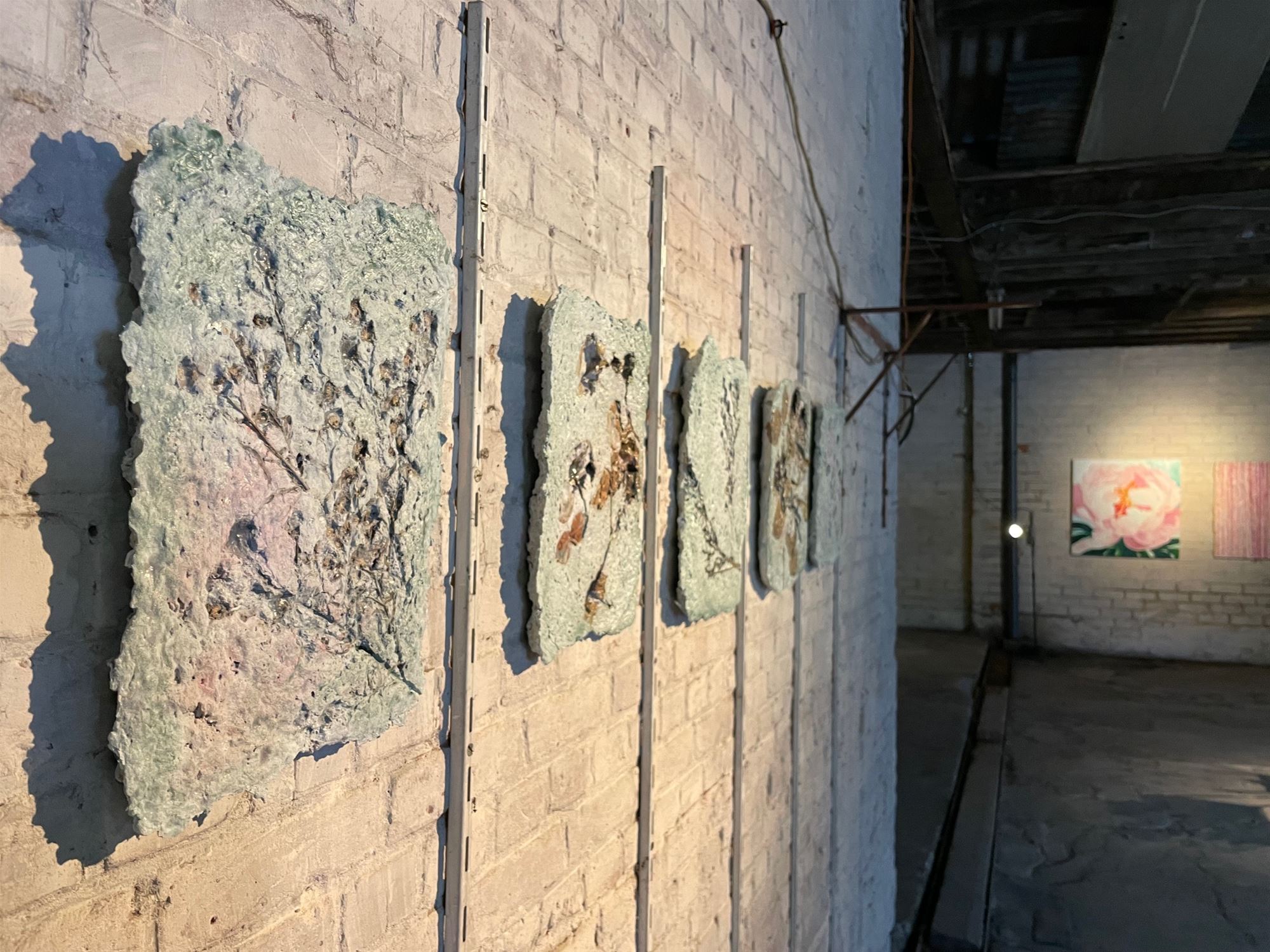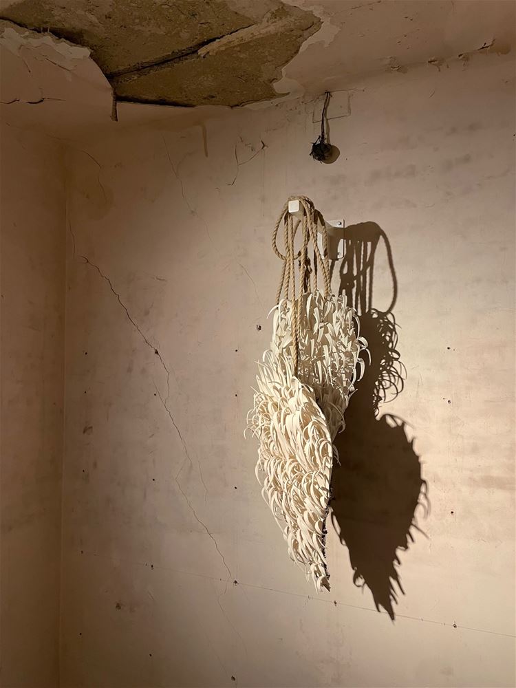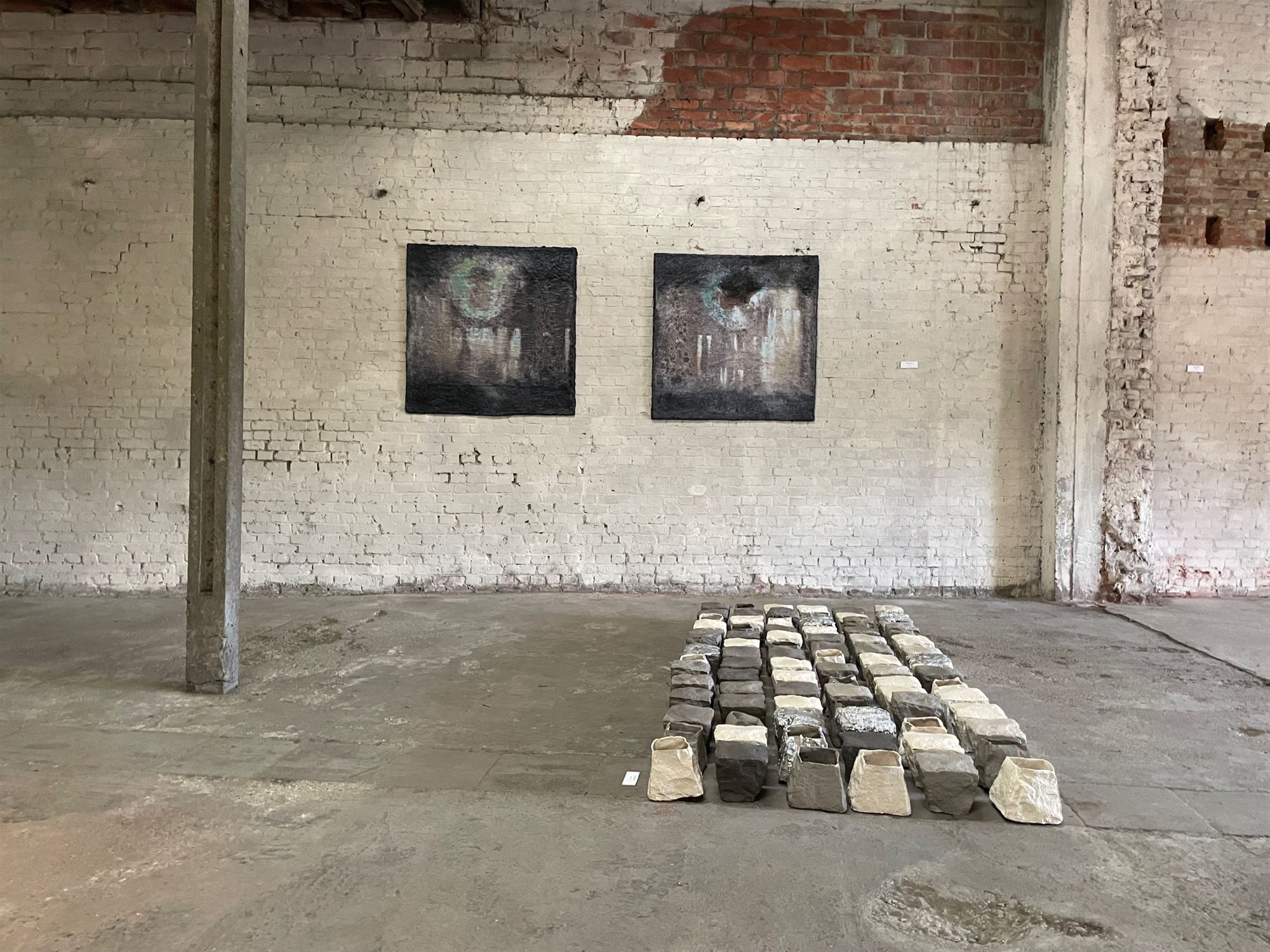 ‘If You Could Touch a Thought’ af. De drie kunstenaars stelden tentoon in de voormalige drakenhal Gijbels in de Schrijnwerkerstraat in Paal, een ondertussen vervallen gebouw dat eerstdaags plaats zal maken voor appartementen. De schoonheid van verlaten of vervallen gebouwen is een vaste waarde bij Marijke, Zjeeke en Annie. Hun werken gingen helemaal op in de schoonheid van de oude bakstenen en versleten plafonds. Ook vulden de drie kunstenaars elkaar zeer goed aan qua sfeer en inhoud. Hun gedachten moeten ongetwijfeld elkaar kruisen en beïnvloeden tijdens donkere kunstzinnige dromerige nachten. Benieuwd naar hun volgende projecten.