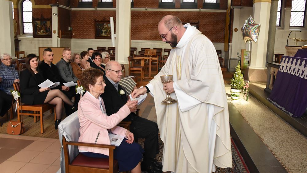 Remy Peremans en Adelina Liesenborgs hun zestigste huwelijksverjaardag. Ze trouwden op 8 november 1961 in de kerk van Tervant. Door de corona werd het feest een paar maand uitgesteld. Nu werd het gevierd met de kinderen, kleinkinderen en achterkleinkinderen.