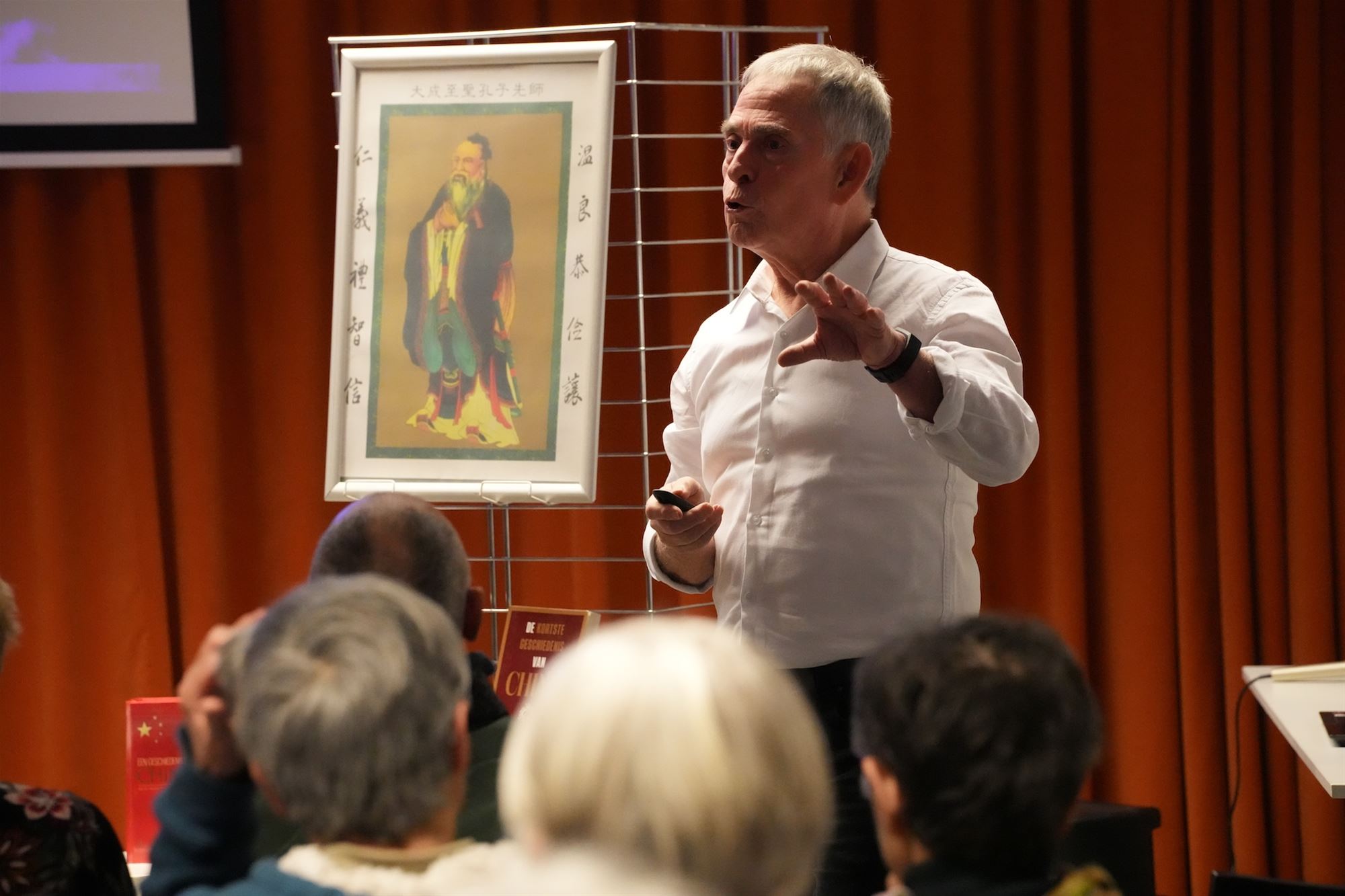 ‘China voor Beginners”. Noël diepte daarbij heel wat weetjes en anekdotes op over het land van Xi Jinping dat hij vaak bezocht als wielerjournalist en begeleider van een wielerteam. Zo wist Noël te vertellen dat het woordje sinaasappel een verbastering is van China en appel. Maar ook zoveel andere Chinese ‘geheimen’ werden ontsluierd voor het aandachtige publiek. Noël had ook heel wat voorwerpen bij om zijn lezing te illustreren. De aanwezigen zijn in ieder geval gewapend om er een voorspoedig jaar van het vuurpaard van te maken.