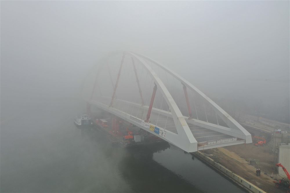 Vanuit de lucht bekeken zie je nog eens goed wat voor kunstwerk deze brug is.