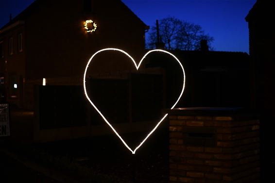 extra verlichting te zorgen en/of doen mee met de actie van Studio Brussel in het kader van de Warmste Week om een vlam buiten te hangen als teken dat we er zijn voor elkaar in deze coronaperiode. Wat dacht je van dit mooi hartje in Tervant?