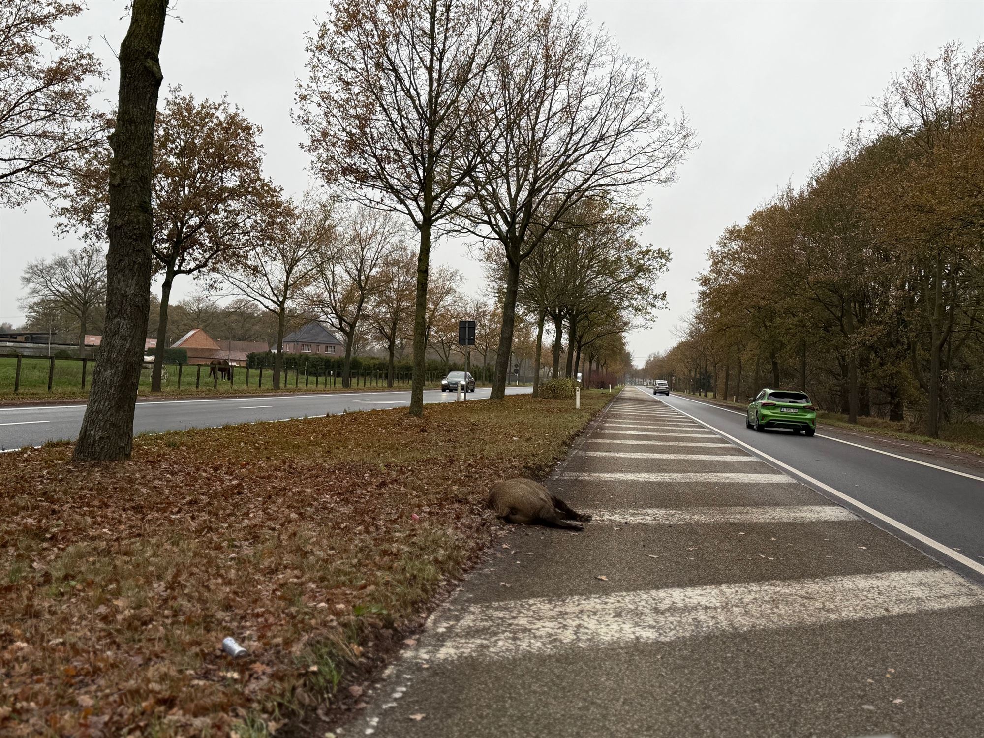Het blijft zeker ook in deze periode opletten voor overstekend wild. Zo heeft deze kolos van een everzwijn een aanrijding niet overleefd op de