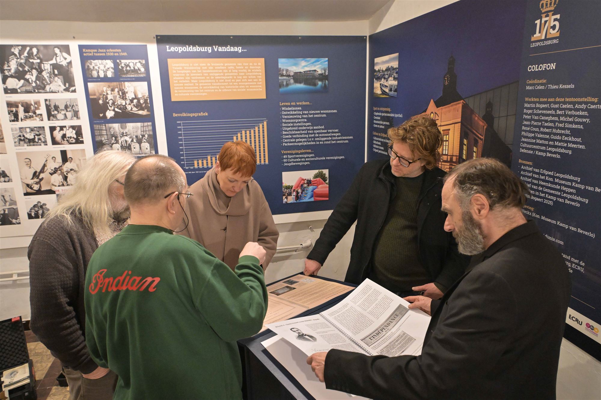 Bezoekers wandelen er door een tijdslijn die de hele geschiedenis van onze gemeente bestrijkt. Foto’s, objecten, getuigenissen en multimediale presentaties vertellen het verhaal van Leopoldsburg en Heppen. QR-codes geven toegang tot extra materiaal, zoals muziek- en videofragmenten en persoonlijke verhalen, waardoor de expo een echte beleving wordt. Erfgoed Leopoldsburg, Heemkunde Heppen en het Museum Kamp van Beverlo.