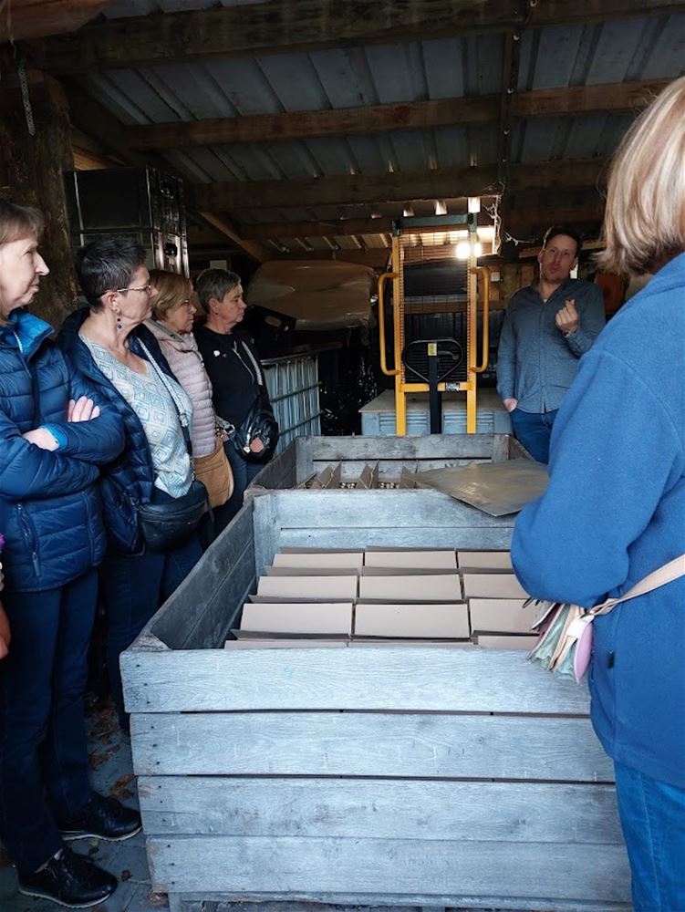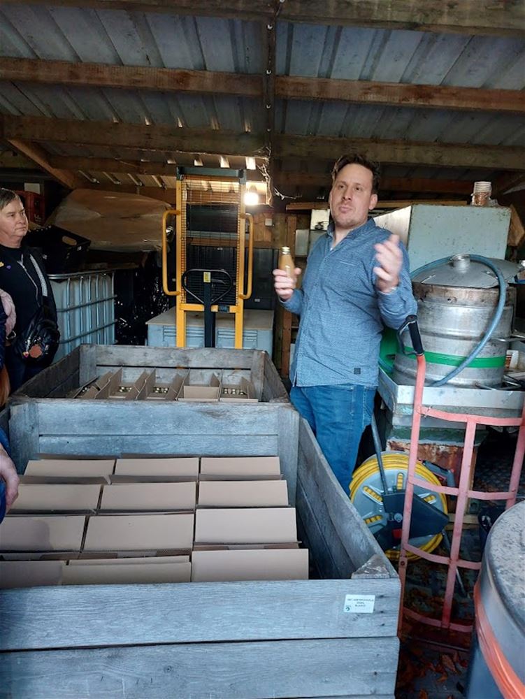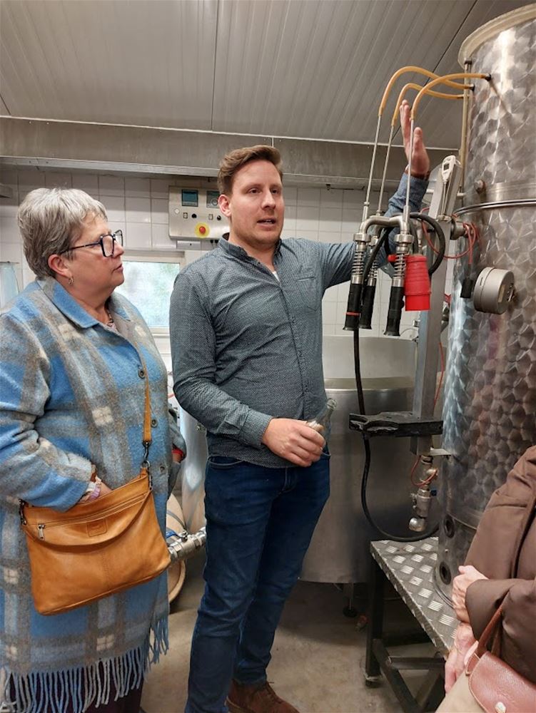 In de ruime boomgaard vol fruitbomen vertelde gastheer Jeroen de geschiedenis van het bedrijf vanaf het prille begin in 1993 . Tot voor kort werd er ook bier gebrouwen, maar daar is hij nu mee gestopt. Momenteel worden er o.a. whisky, gin, calvados, appelstook en lekker appelsap geproduceerd.. Er wordt gebruik gemaakt van het beste fruit en graan uit de regio.