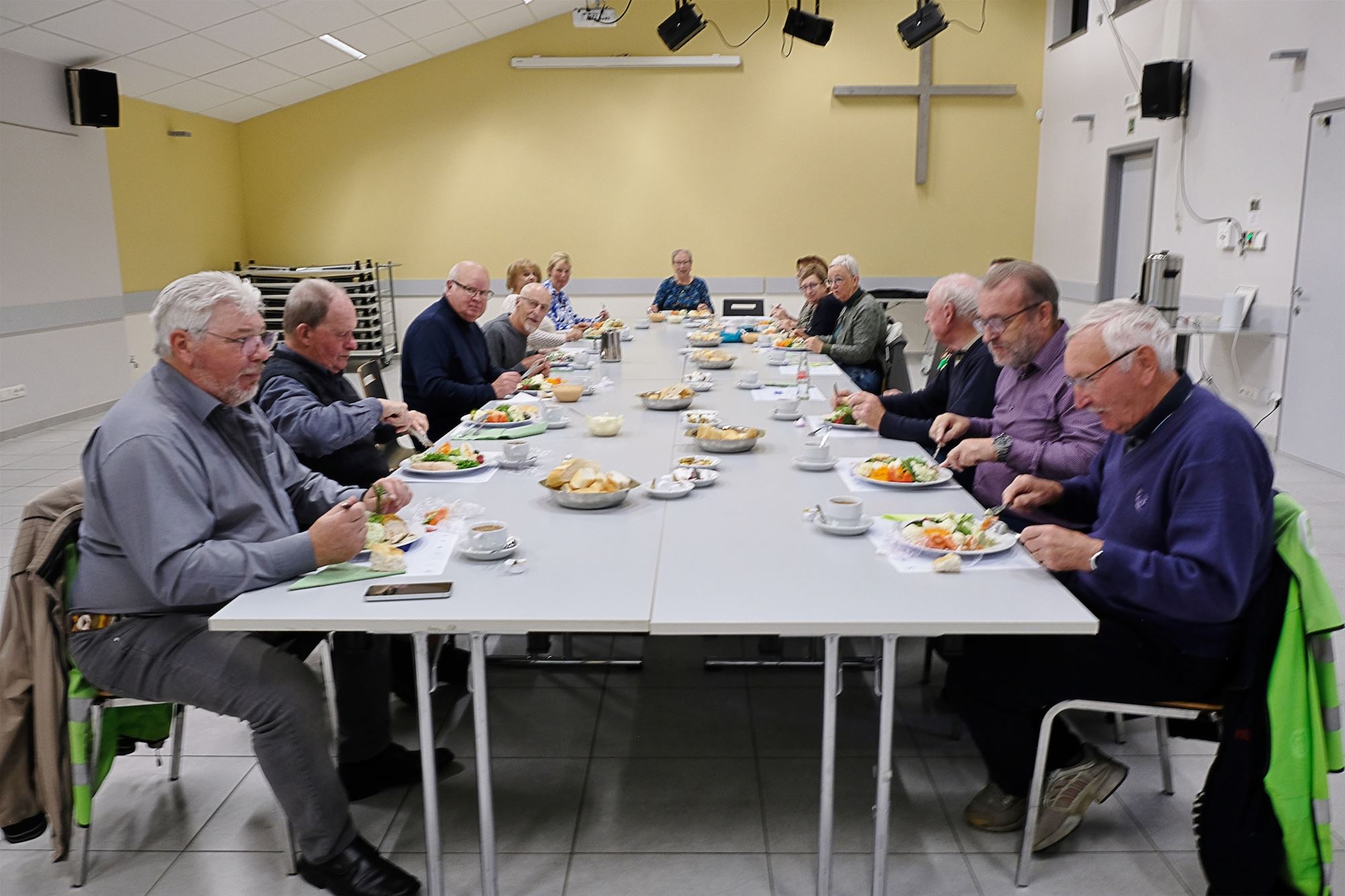 Deze rit was korter dan gewoonlijk, want er moest nadien nog gefeest worden. Van maart tot oktober hebben de fietsers 23 tochten van ± 40 km en 6 van ± 50 km afgelegd, met een gemiddelde van 20 deelnemers. Na afloop werd er lekker gesmuld, gedronken en gebabbeld. Tijdens de pauze bedankte weggids Lucien de wegkapiteins Fons en André. Er werden dit jaar maar een paar lekke band gereden. Weggids Lucien hoopt iedereen terug te zien de eerste maandag van maart 2026. Dan start voor het 36ste jaar voor de groep fietsers van Okra Koersel.