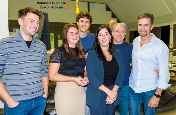 ploeg For Beacon & Beans met 124 punten. De 2de plaats was voor Massagesalon Chez Josée Dusauchoit met 123 punten en het brons was voor Advocombat met 122 punten. En dat het er spannend aan toe ging was te zien aan de uitslag. Na de geslaagde quiz werd er nog flink verder gevierd.