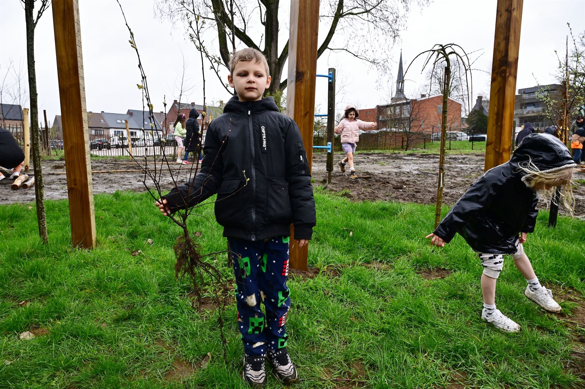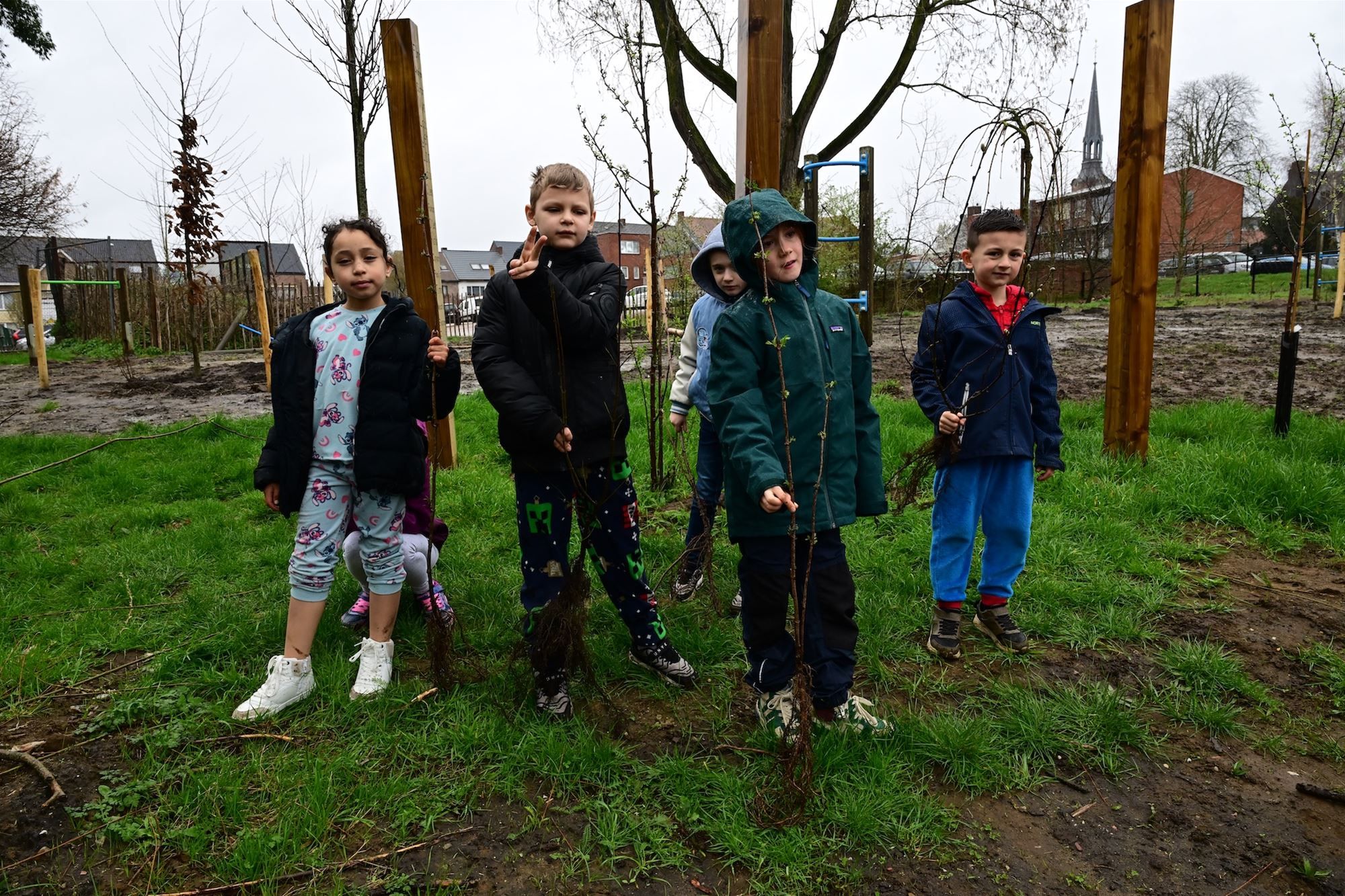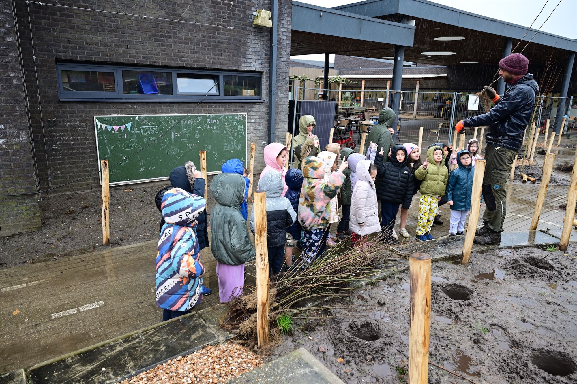 ‘Natuur in je school’, met upcycling als extra accent. Bioloog Ben Delbaere vertaalde de dromen van de kinderen naar schetsen. De architect Kris Schurmans van Lekotoper werkte die verder uit. De gerecupereerde betonelementen vormen vandaag het kloppend hart van de nieuwe groene speelplaats. En met veel enthousiasme en in de regen werd gisteren de nieuwe speelplaats voorgesteld tijdens de aanplant van de bomen. (