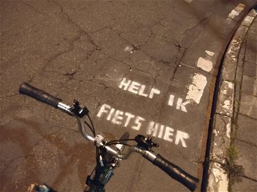 actie ‘Help, ik fiets hier!’. Ze spoten op verschillende fietsstroken langs gewestwegen deze quote om aan te kaarten dat verschillende fietsstroken slecht berijdbaar en zo zeer gevaarlijk zijn. Ook in