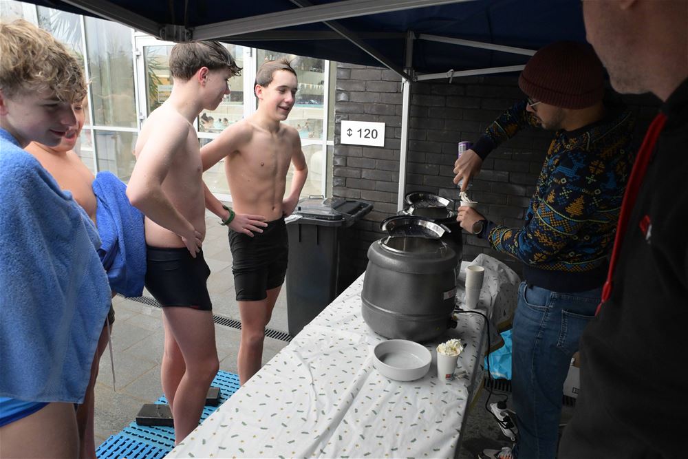 In het buitenzwembad van Sportoase Beringen vind gisteren de traditionele ijsberenduik plaats. En dat was toch even bibberen. Morgen om 14u kan je aan de Paalse Plas naar de ijsberenduik van de Stad Beringen.