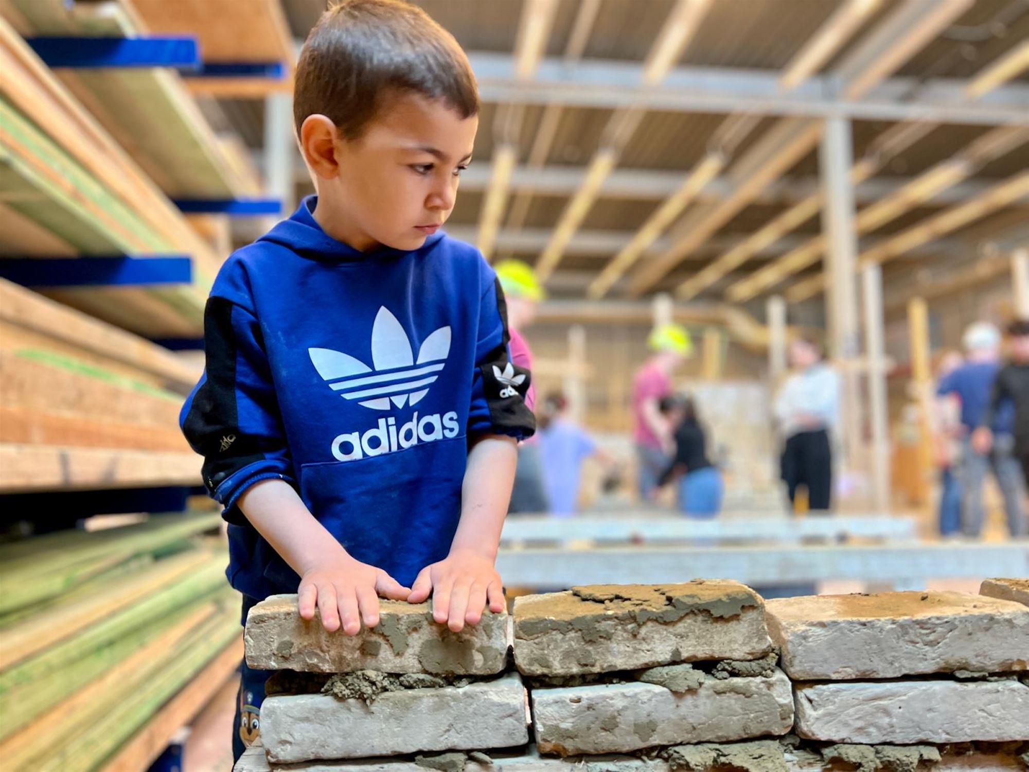 Spectrumcollege. De studenten van de afdeling gaven hen een kijkje achter de schermen en lieten hen vooral ook actief meewerken. De kleuters konden klinkers leggen, een muurtje metselen, dakpannen plaatsen en ervaren hoe een waterafvoer werkt. Voor dit laatste werden bijvoorbeeld badeendjes gebruikt die ze konden laten meevoeren door het water, door buizen die deels opengewerkt waren.