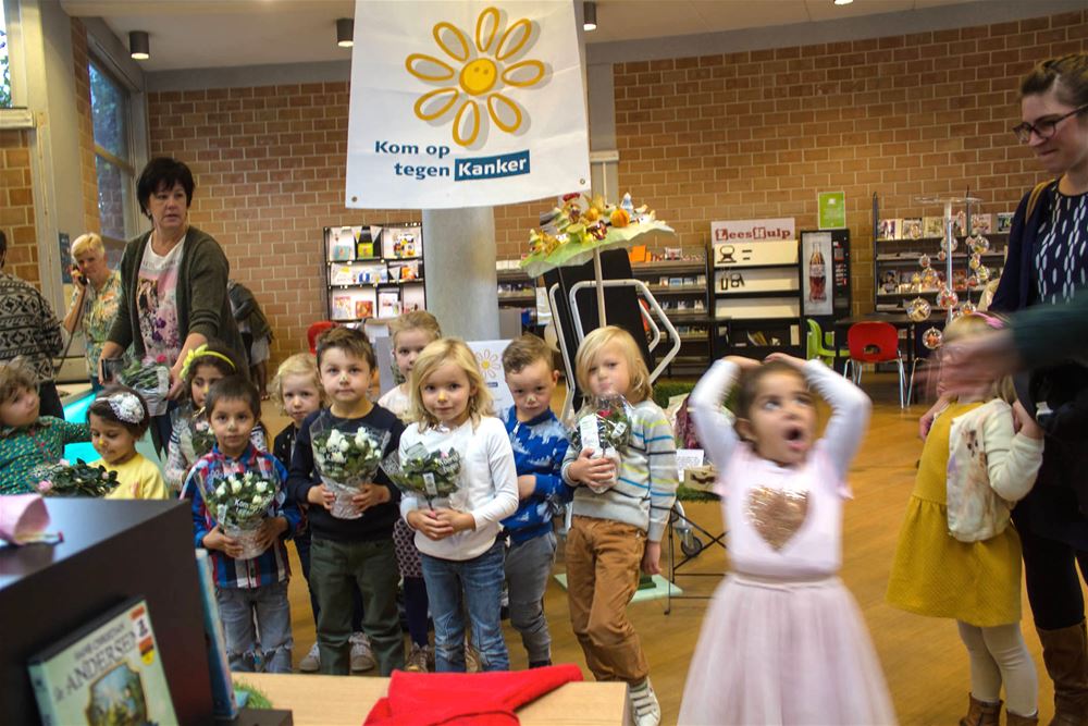 bib van Beringen kon je vandaag plantjes kopen ten voordele van 'Kom op tegen kanker'. Het regenweer weerhield de mensen niet om naar de bibliotheek af te zakken om hun steentje bij te dragen aan de jaarlijkse plantenactie. Ook deze kinderen tonen trots hun plantje. Schepen voor de bibliotheek