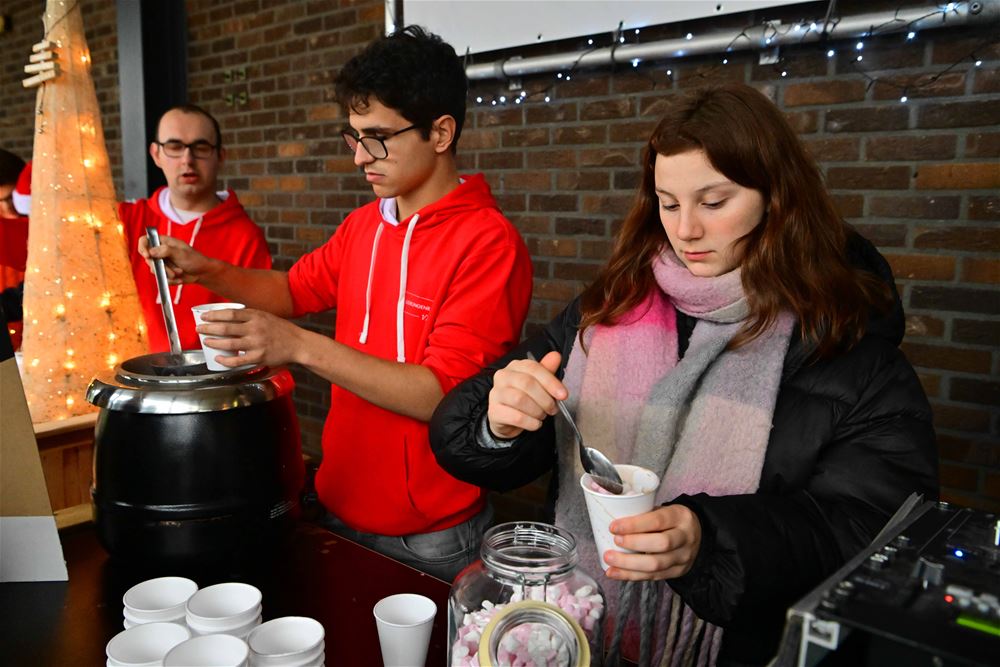 nieuwe leerlingenraad van VIBO Sint-Barbara organiseerde vandaag een verkoop van warme chocomelk. Ook donderdag en vrijdag zijn er nog acties op school door de leerlingenraad om wat extra centjes te verzamelen."Die willen we allemaal terug investeren voor het welzijn van onze leerlingen. Zo denken we om extra zitbanken te plaatsen op de speelplaats of om extra naschoolse activiteiten te organiseren", zeggen de leerlingen enthousiast. De leerlingenraad is nieuw in de school en een kernteam van leerlingen en leerkrachten komt wekelijks samen om samen school te maken. Er zijn vier teams die elk aan eigen projecten werken. Team 1 werkt rond de speelplaats om van die plek een leuke en gezellige plek te maken. Zo is er bijvoorbeeld schoolradio op vrijdag. Team 2 zorgt voor verschillende middagactiviteiten zoals sport of spel. Team 3 werkt rond naschoolse activiteiten en het laatst team staat in voor speciale projecten zoals een kerstfeest of schoolbal.