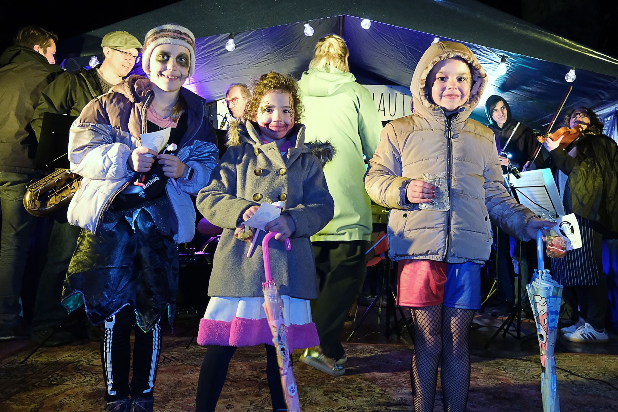 De kinderen van het muzikaal ontwaken en muziekinitiatie openden het evenement met een tof optreden, ze zongen en speelden liedjes over spoken, skeletten en drumden mee op de muziek van The Addams Family.