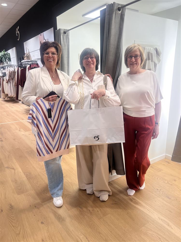 kregen een uitnodiging van E5 mode. Zij kregen stijladvies en persoonlijke begeleiding tijdens het shoppen. Er was een warme ontvangst met een hapje en een drankje. De dames waren helemaal in hun nopjes.
