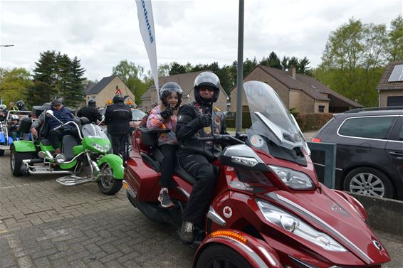 Peggy Goossens, persoon met MS die wordt behandeld in het NMSC, een motorrit voor personen met MS, familie, vrienden en sympathisanten. Deze MS Run vertrok in Scherpenheuvel richting Beringen. De opbrengst gaat integraal naar MS onderzoek. (Patrick Cosemans)
