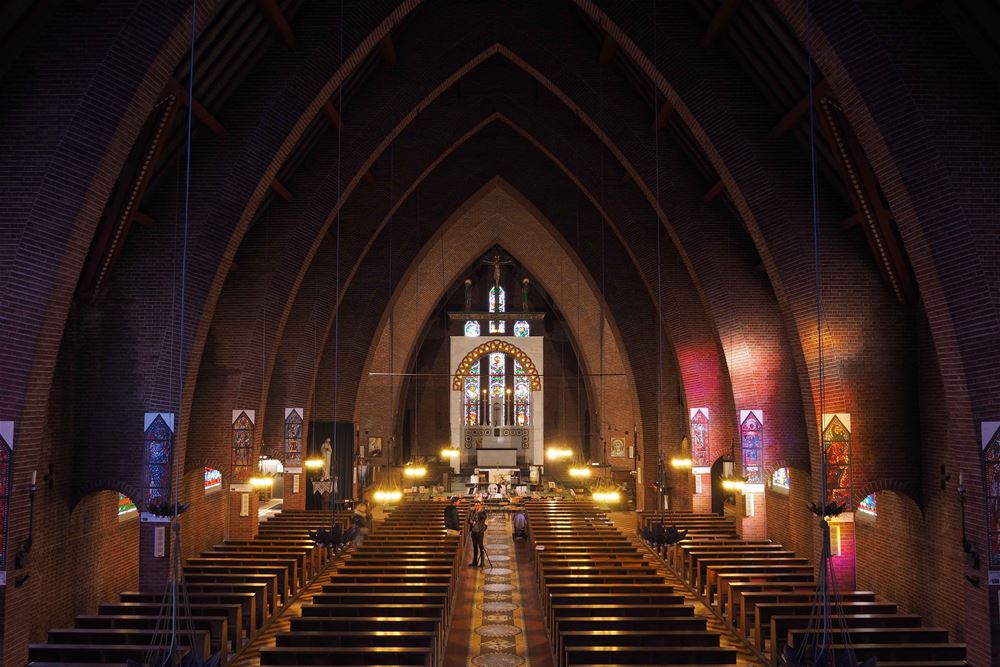 'Glück Auf' ontbrak niet. In de kerk is er nu ook een speciale tentoonstelling gemaakt over de restauratie van de unieke glasramen van