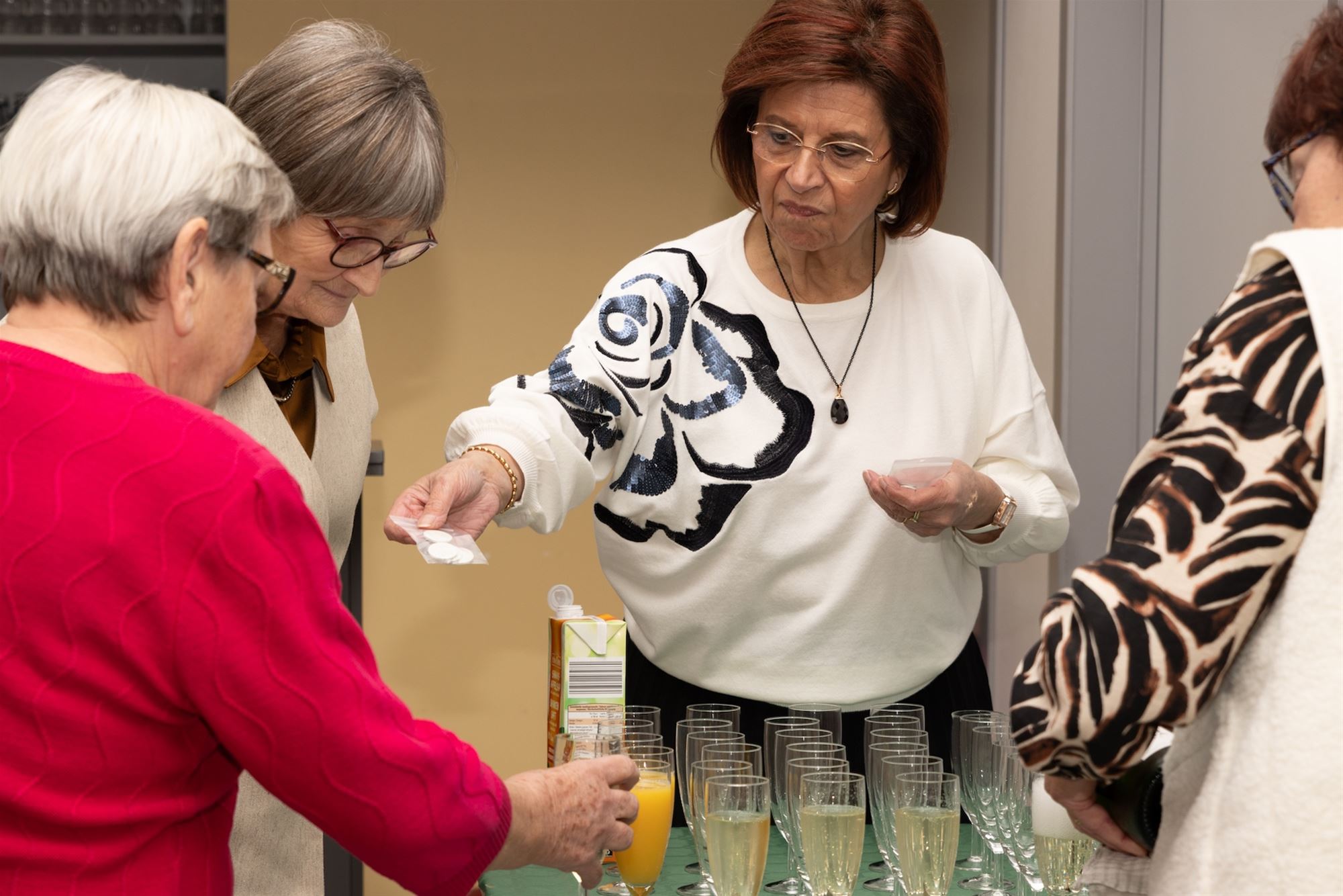 43 leden en 6 andere geïnteresseerde dames werden vriendelijk ontvangen door het bestuur met een glaasje cava of fruitsap. Na de beste wensen voor een jaar met veel warmte, vriendschap en inspiratie werd het nieuwe jaarprogramma voor gesteld.