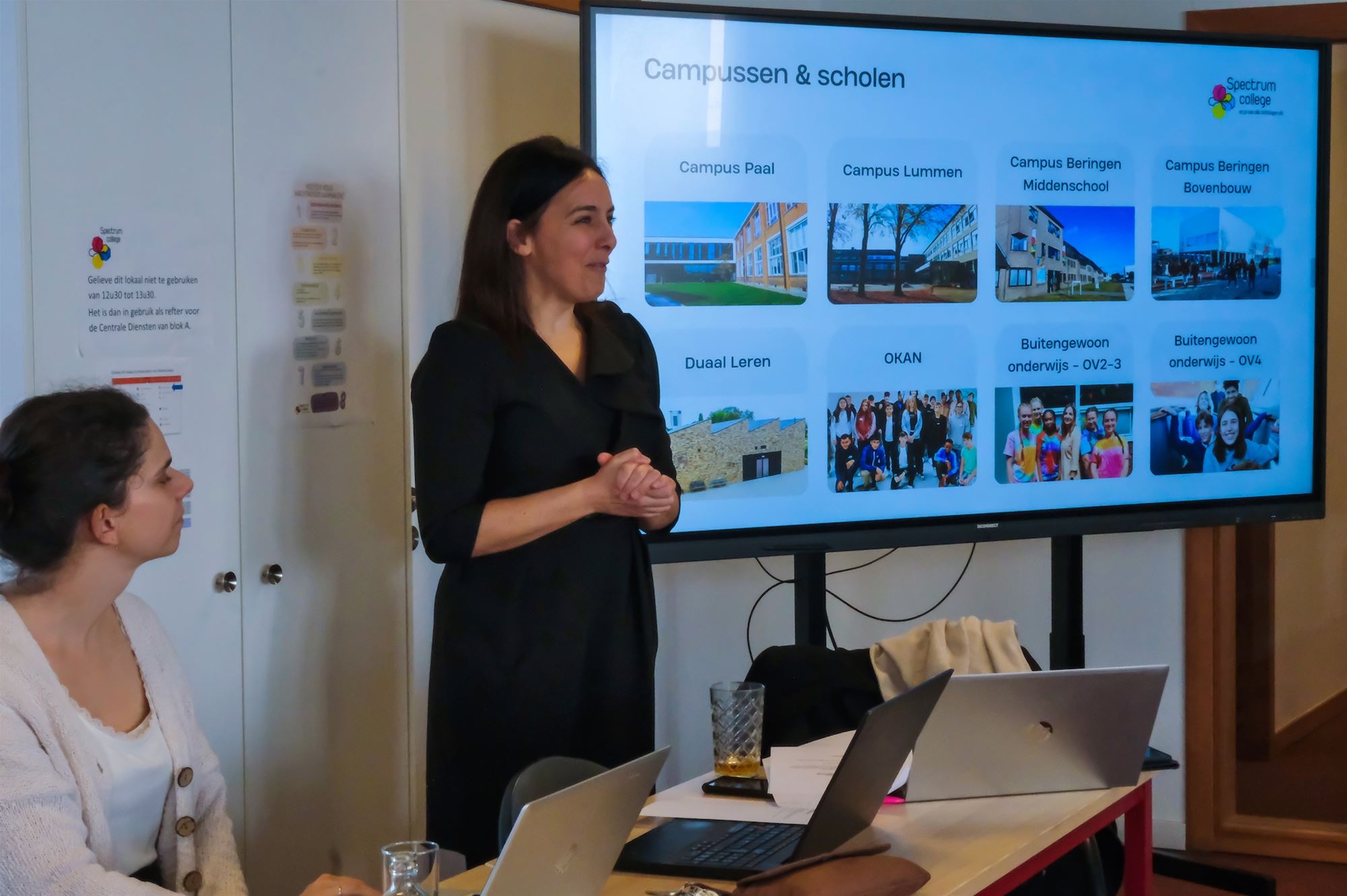 De groep startte onder het genot van een drankje en een hapje met uitleg door de directie over de onderwijsstructuur, de missie en visie van de school én de praktische en onderwijskundige aanpak van de school.