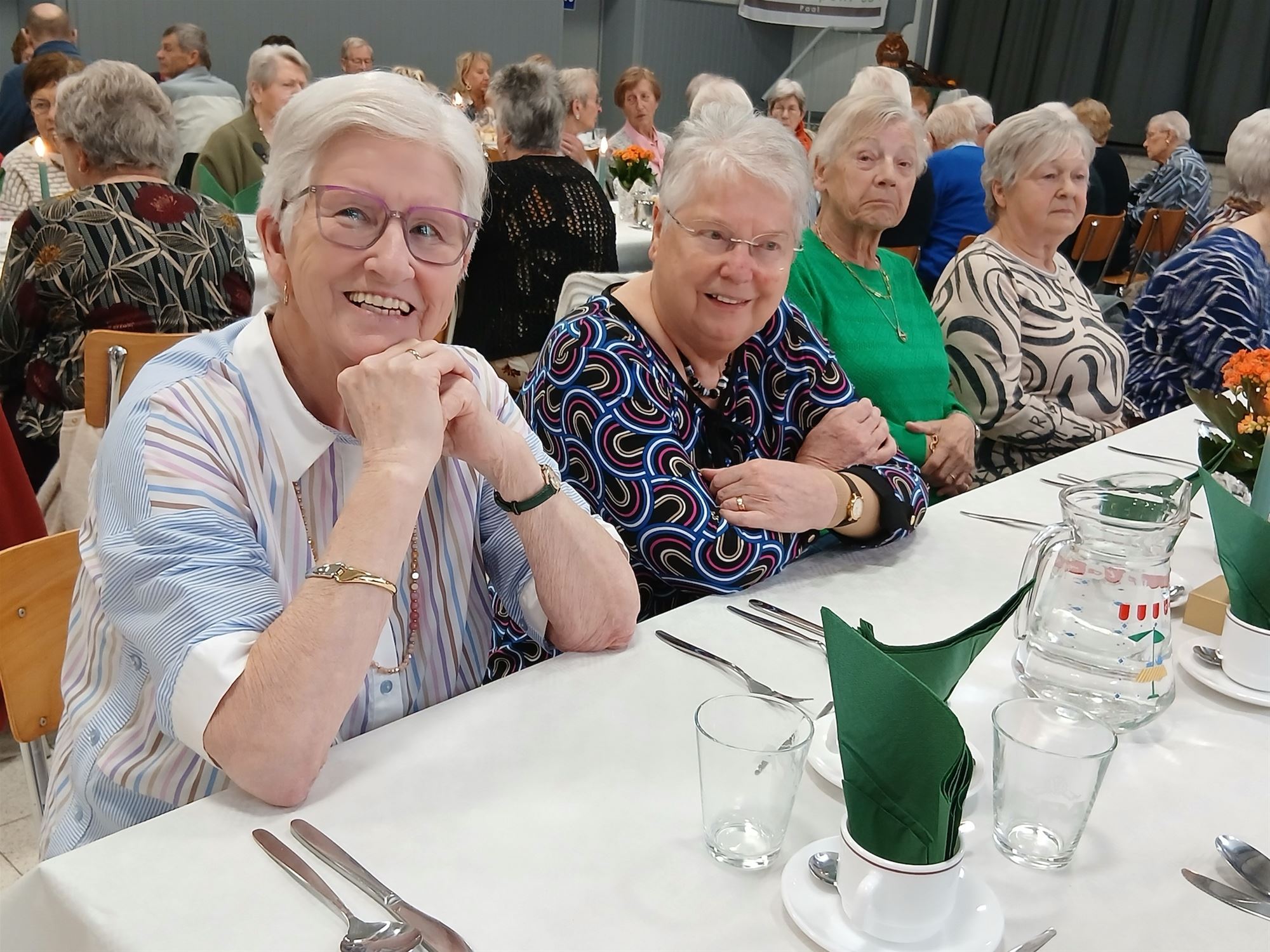 Na de welkom en de bezinning konden we beginnen aan onze 4-gangen menu. Als animatie hadden we deze keer Kim gevraagd en zingen kon ze. Ze kreeg de leden in beweging om mee te wiegen, te zingen enz... Onze tombola was er ook weer en iedereen keek er naar uit om een bloemetje, een fruitkorf of een andere prijs in de wacht te slepen. Nadien was het tijd voor een lekker stuk taart en een tas koffie. Een leuke babbel en gezellig samen tafelen maakte dat de namiddag zeker geslaagd was. Kortom een namiddag om gevolg aan te breien. Een dankjewel of het was ne goeie namiddag klonk in de oren bij het naar huis gaan. Tot een volgende keer. Ja, daar doet Okra Paal het voor! Ook dankjewel aan de bestuursleden en de hele ploeg helpers die na het feest ons hielpen. Een verdiende dikke pluim", vertelt voorzitter Maria Meynkens trots.