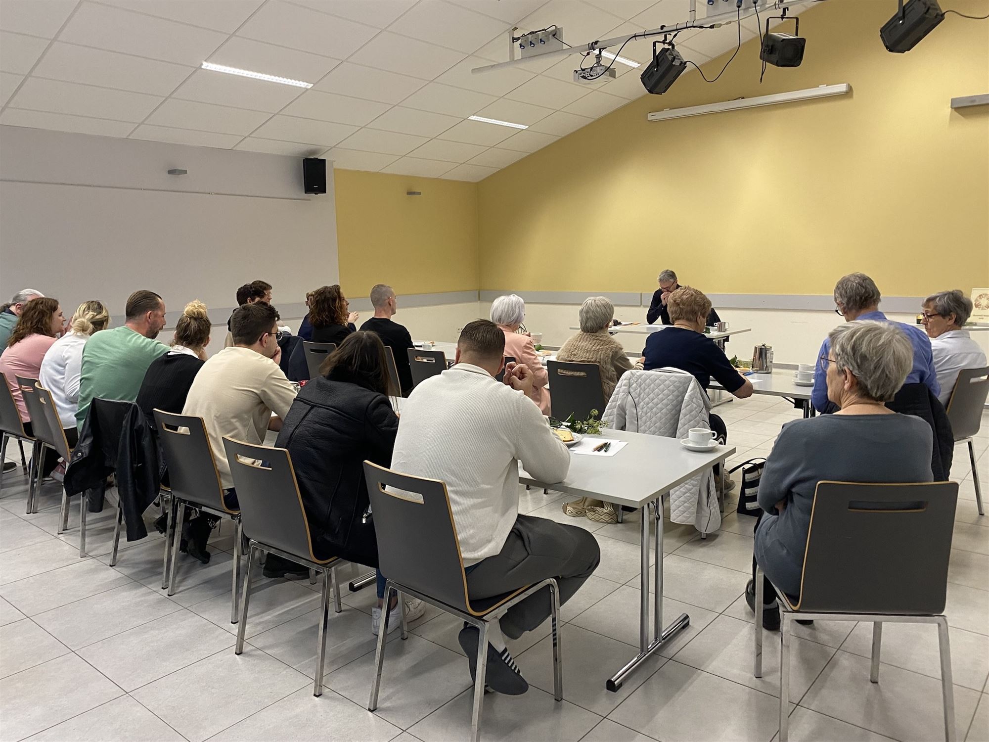 Rouwende Mensen Nabij Koersel een ontmoetingsnamiddag voor mensen met ‘verlies en rouw’. "Na een korte gebedsdienst in de kerk gaf Luc Lowel, diaken in Zoutleeuw, een uiteenzetting over ‘verlies en rouw’. We hoorden dat mensen verschillend zijn en dat iedereen mag rouwen op zijn manier. De aanwezigen luisterden heel aandachtig, zelfs jonge kinderen waren aanwezig en werden door Luc betrokken in de uiteenzetting", vertelt Gerda Van Moll.
